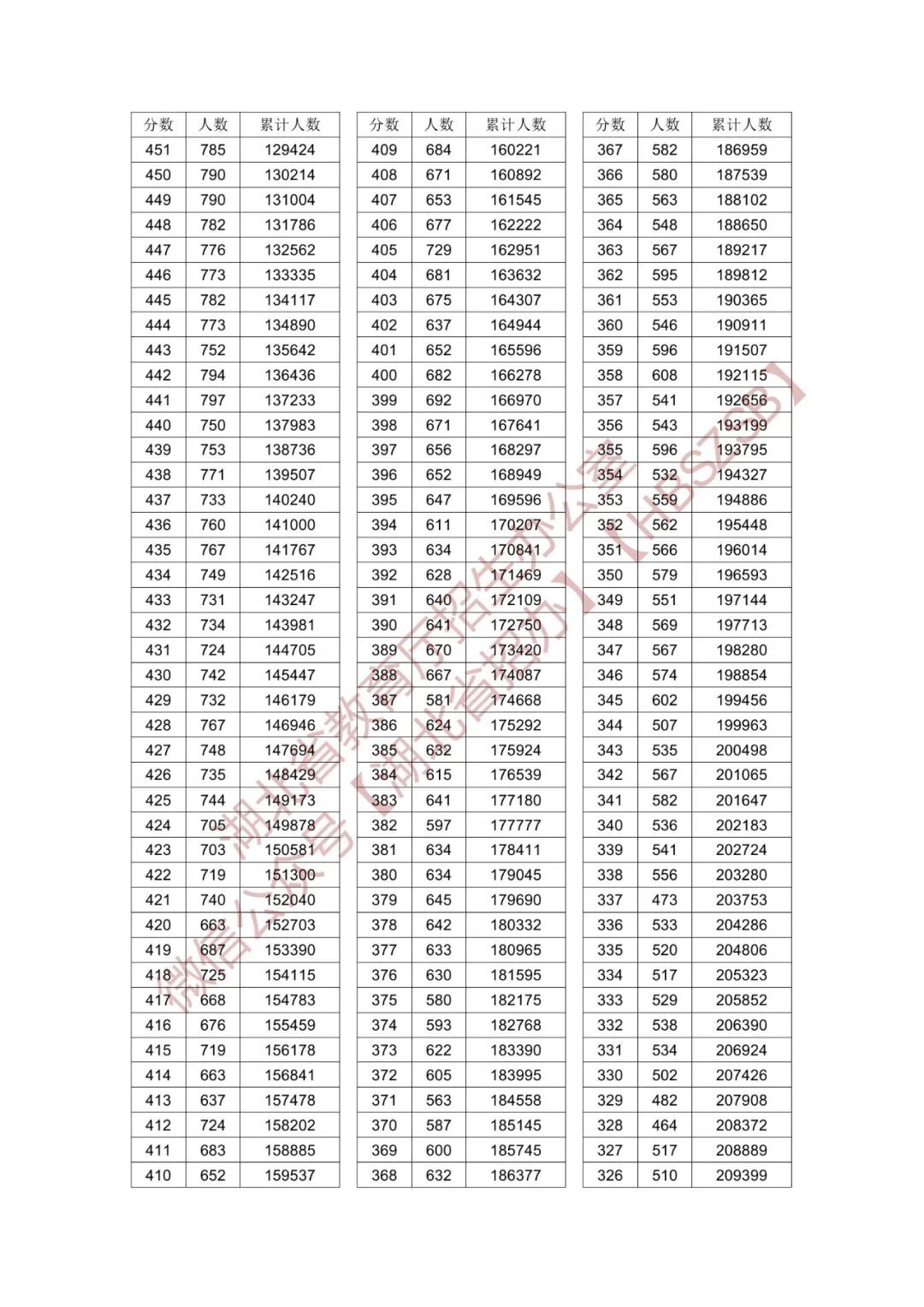 刚刚,湖北省招办发布2024年普通高考一分一段表。