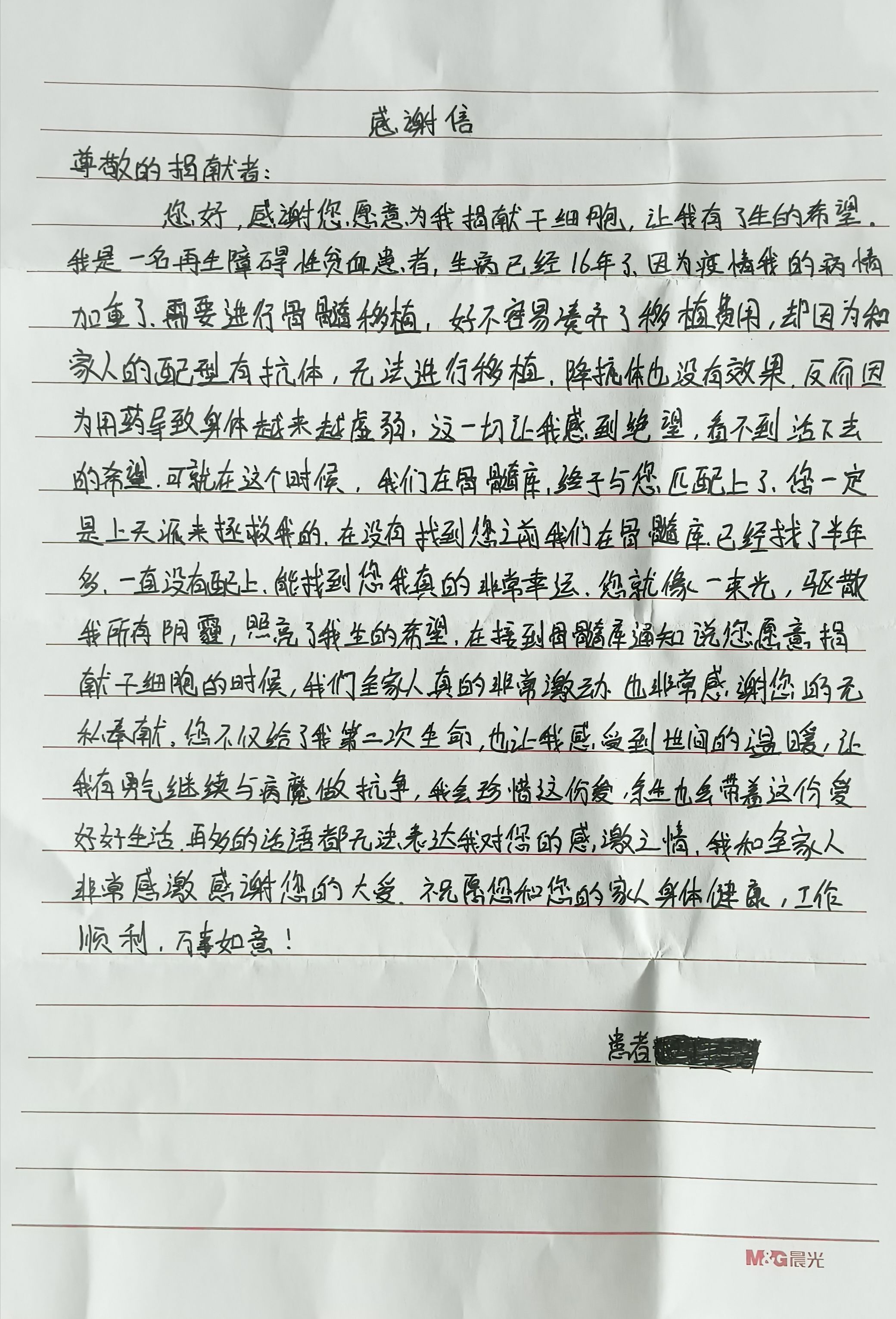 长江日报大武汉客户端6月25日讯 “信里写到他有了活下去的勇气,对方也许是一个小朋友,也许是一个成年人,我都想对他说,他的这份勇气也会鼓励着我,让我更坚定地去做这件事。”6月24日,在武汉市中心医院,38岁的吴斌(化名)说着自己捐献造血干细胞的感受。