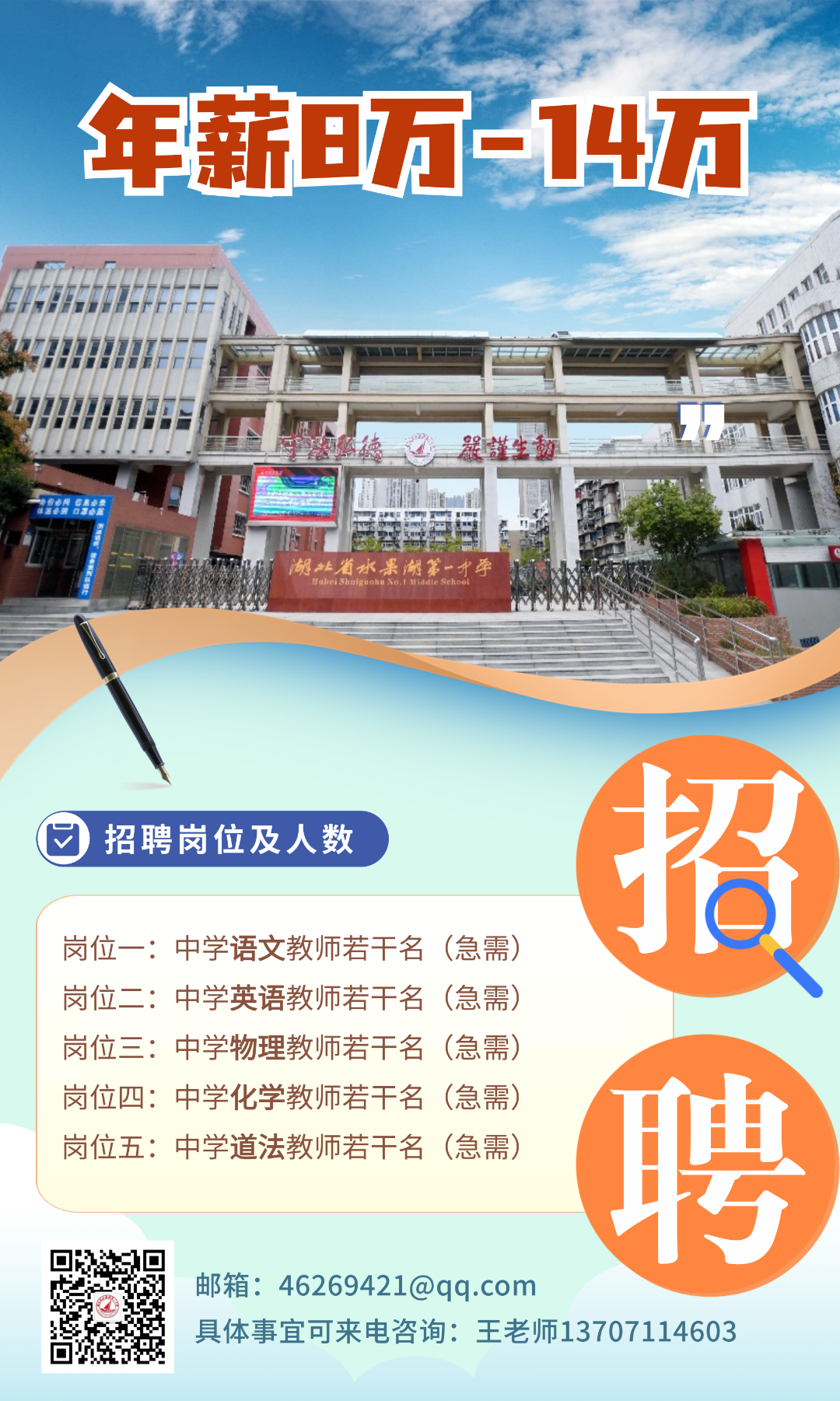 为满足学校发展需要,经学校党委会商议并报武昌区教育局备案,武汉市水果湖第一中学决定面向社会公开招聘校聘教师,现公告如下: