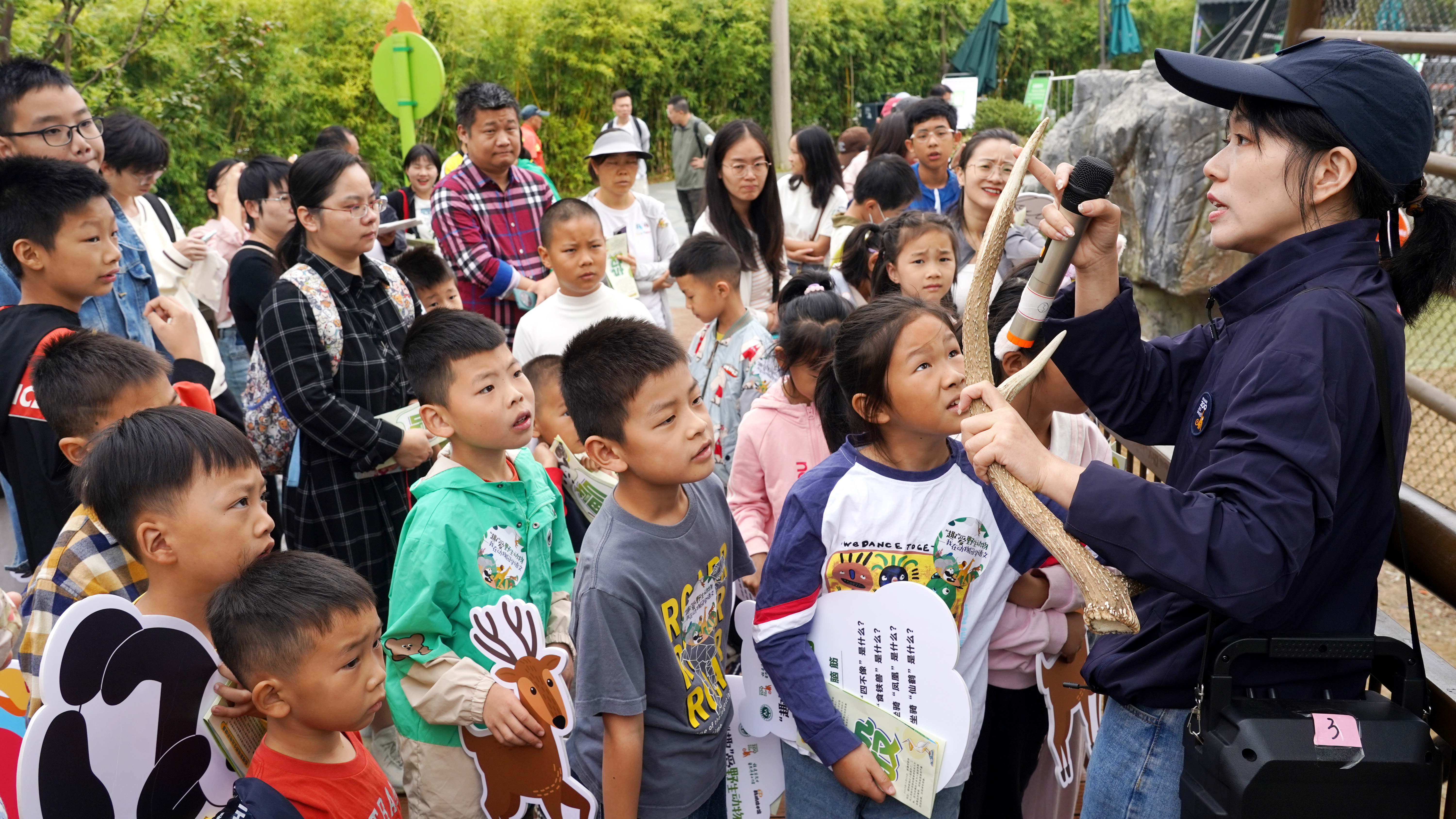 “四不像”麋鹿、“食铁兽”大熊猫、“凤凰”原型红腹锦鸡、“仙鹤”丹顶鹤,都是传说里的坐骑?10月6日,2024年武汉自然教育“‘趣’爱野生动物——我在动物园学语文”之“寻找传说的神奇坐骑”主题活动在武汉动物园举办,研学参与者沿着亚洲区一路游览,发现了传说中坐骑动物原型,深入了解动物背后的文学典故和趣味科普知识。