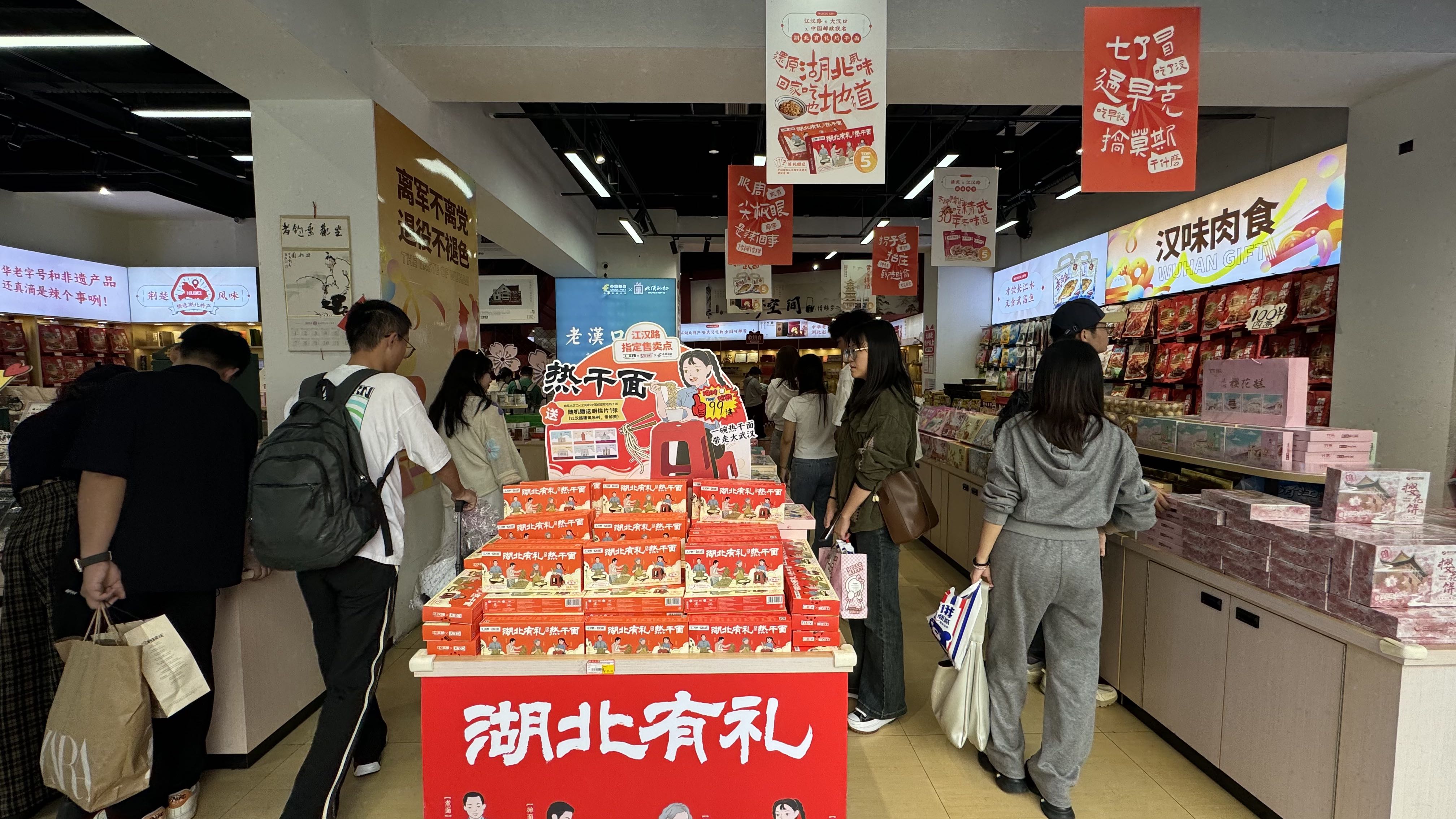 店内展示的武汉十大伴手礼、武汉礼物中,蔡林记热干面礼盒、扬子江食品“追光武汉”糕点礼盒、楚味堂武昌鱼礼盒、周黑鸭谢谢礼礼盒等都深受游客欢迎。业内专家表示,无论是美食还是文创产品,都能让游客在离开武汉后,依然能够通过这些礼物回忆起在武汉的美好时光。武汉的伴手礼不仅仅是一份礼物,它们对于传播武汉文化、提升武汉的城市形象更是有着重要意义。
