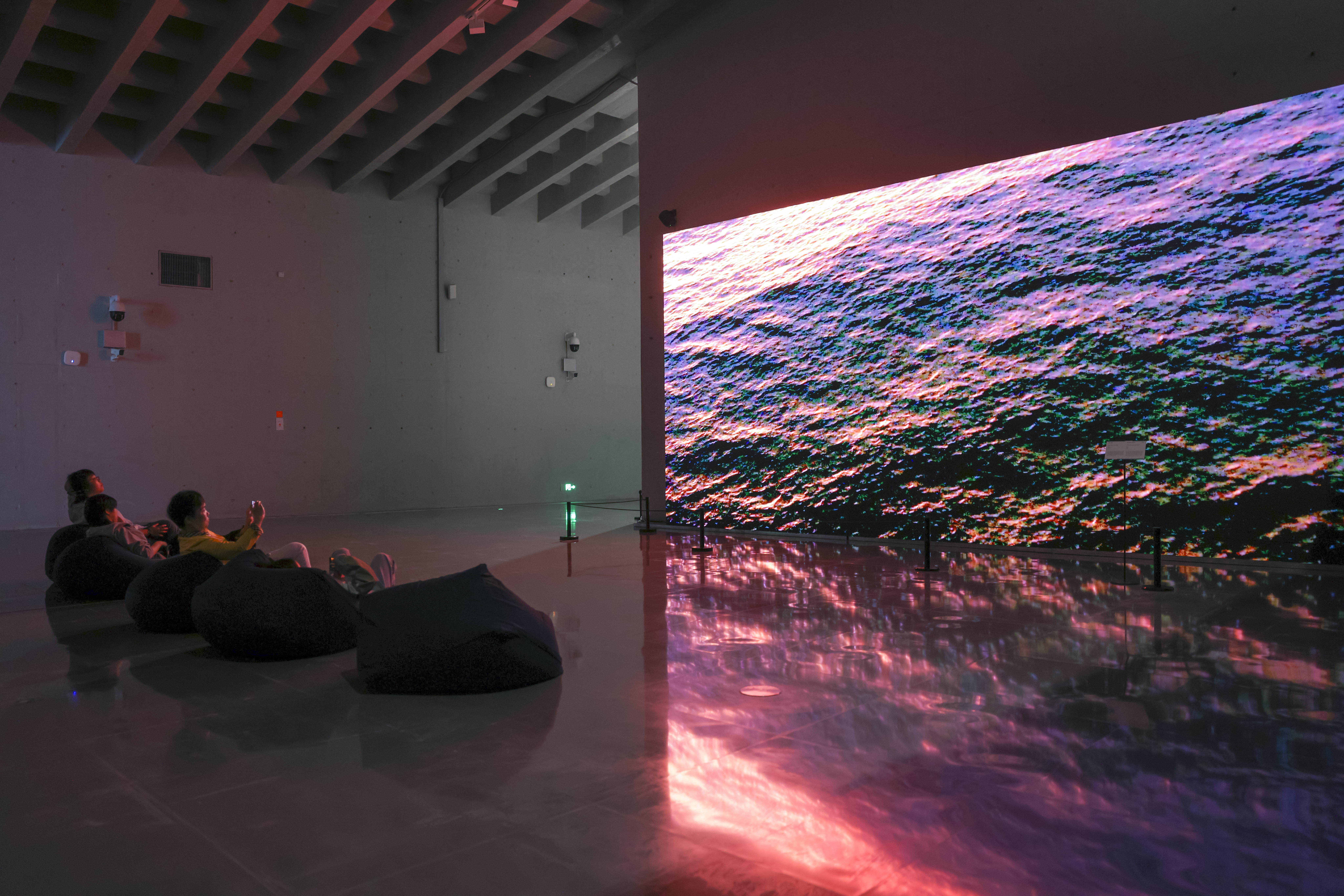 当代艺术跨越传统学科边界和固有形态的融合创新,使艺术语言以自身的流动性呈现出表达的多样性。此次展览的不少作品以科技与艺术交融的面貌凸显出活力,也为观众带来震撼的交互体验。艺术家徐冰的视频装置《卫星上的湖泊》,是利用已过服役期在轨卫星的冗余,在外太空拍摄的首部定格动画作品。一名观众躺坐在沙发上抬头仰望布置在天花板上的动画,他说:“非常特别的一件艺术作品,沉浸在这片空间,不禁对外太空充满无限想象。”艺术家邱宇带来的《微·声》,通过显微镜实时采集植物的叶片信息,并转化为不断变化的电子信号,通过算法,组成植物显微信息的“交响乐”。