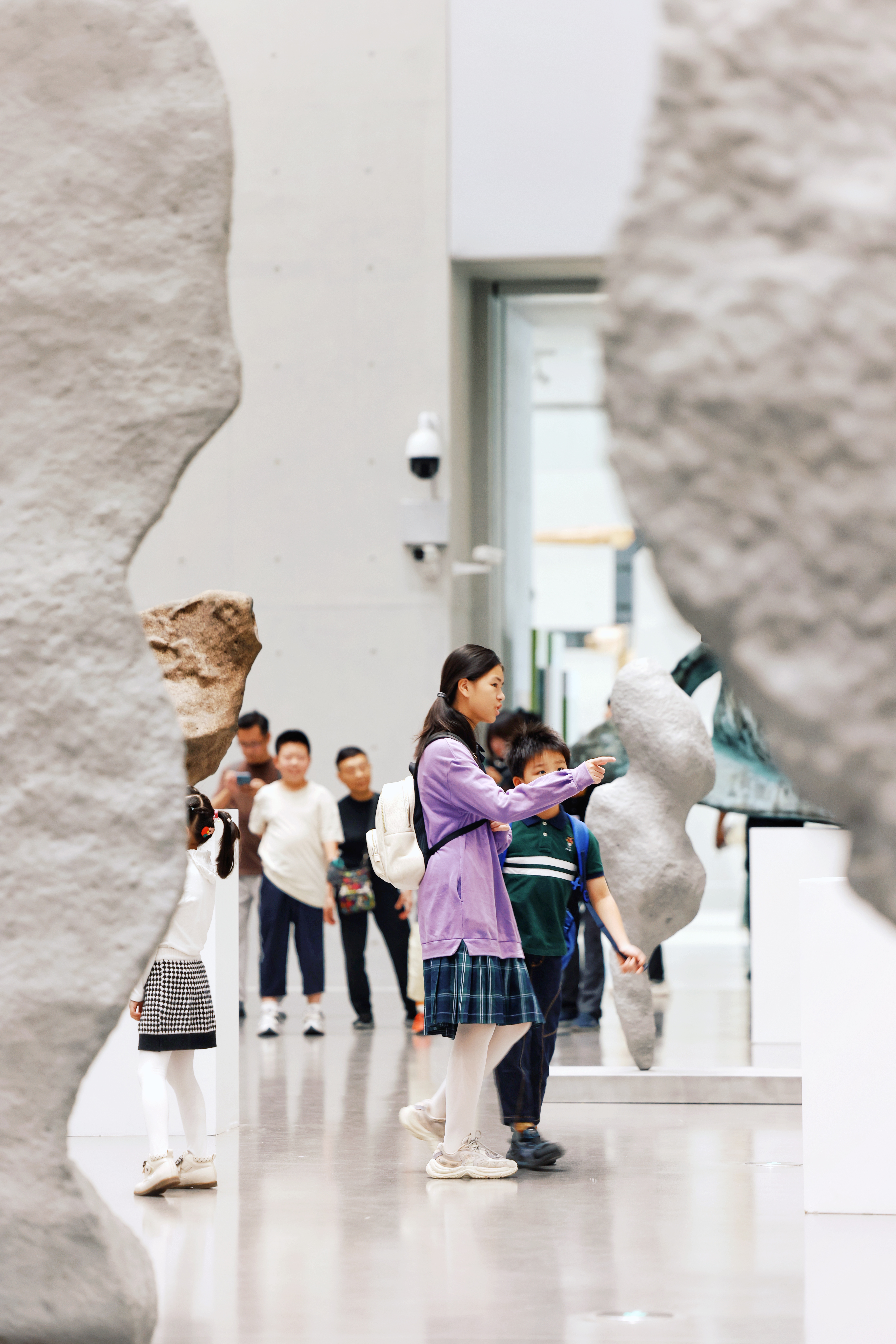 观众穿梭在雕塑作品《启示》的“石头阵”之间。 曾熙来 摄
