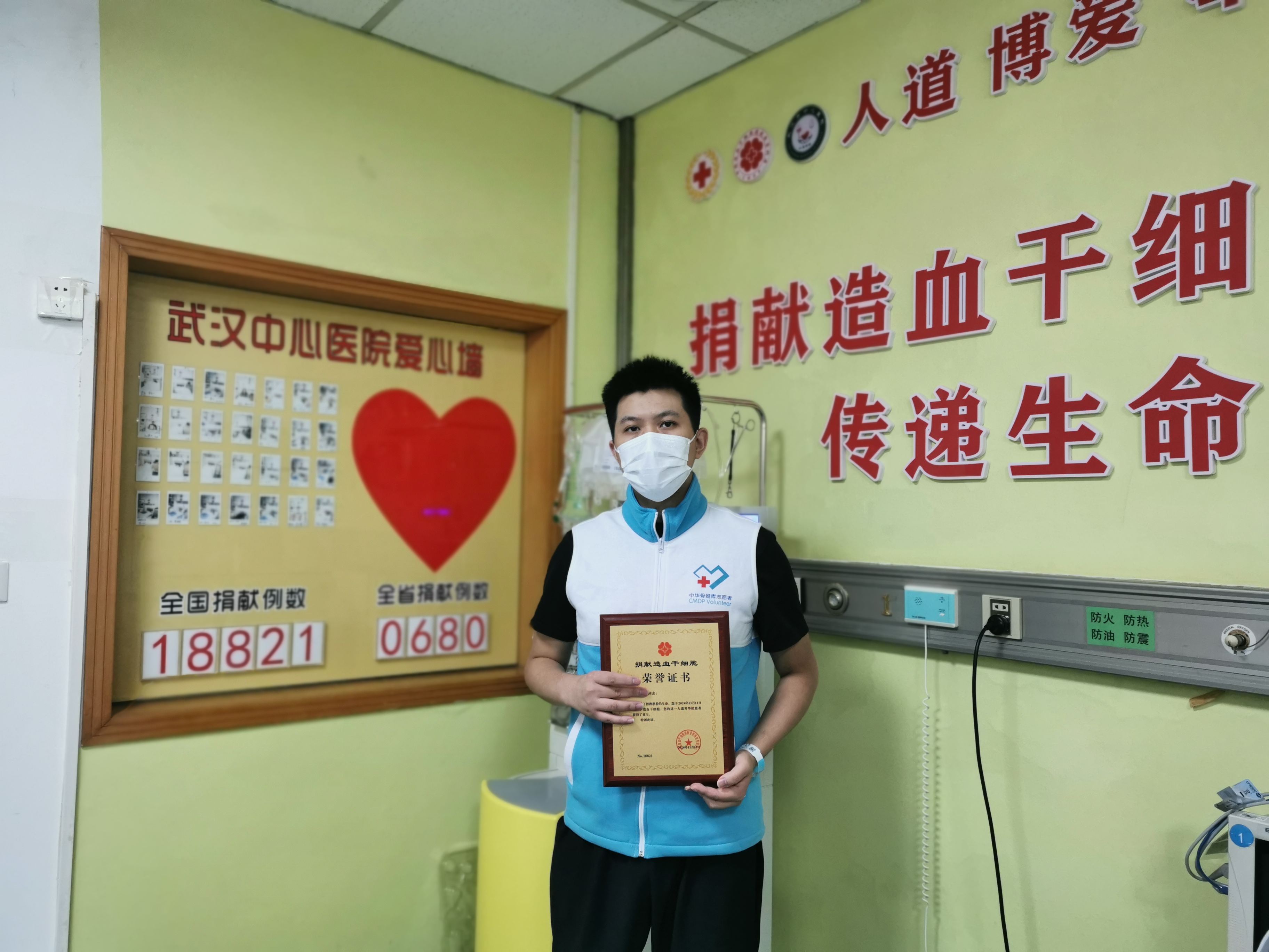 刘宇身形挺拔、模样帅气,闲暇时喜欢打打游戏,也经常参加学校组织的公益活动。大二那年,他偶然看到校园里的献血车,上前第一次献了血,并在了解骨髓库相关信息后,签署了意愿书。此后,因学校离武汉市血液中心较近,他还常常与室友一同前往献血,至今已累计献过1次全血和6次成分血。