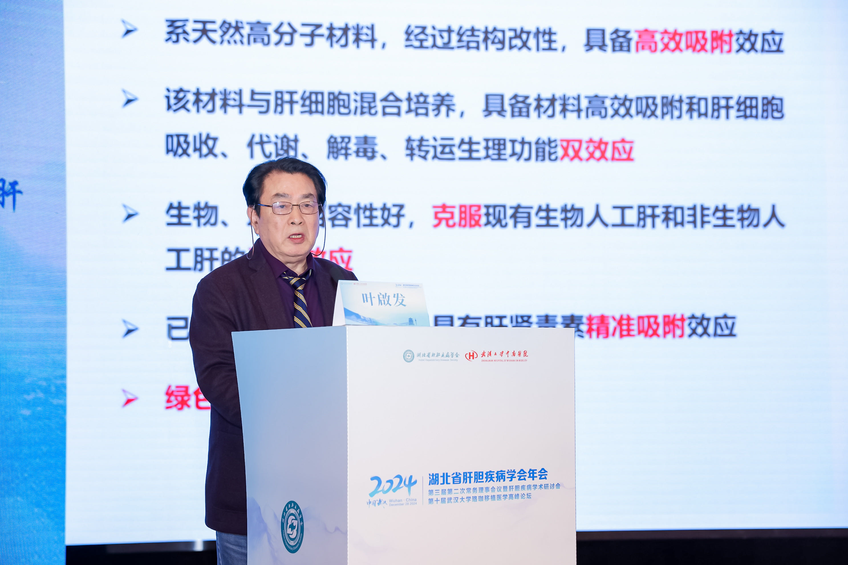 主持研发的叶啟发教授详细介绍了天然高分子“生物人工肝”的研发情况及临床优势。