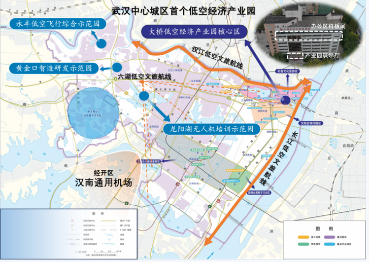 汉阳区积极打造低空经济生态产业园及飞行营地等应用场景及产业载体亮相。其中,在龙阳湖半岛片区筹备打造飞行营地,促进低空运营服务的发展,助力龙阳湖无人机培训示范园建设;黄金口片区大宗连片工业用地,可用于打造低空+制造+总部的产业集群;在即将启动建设的汉阳高铁站,谋划布局航空接驳功能,推动低空+轨道的应用场景,实现空客联动、无缝换乘。