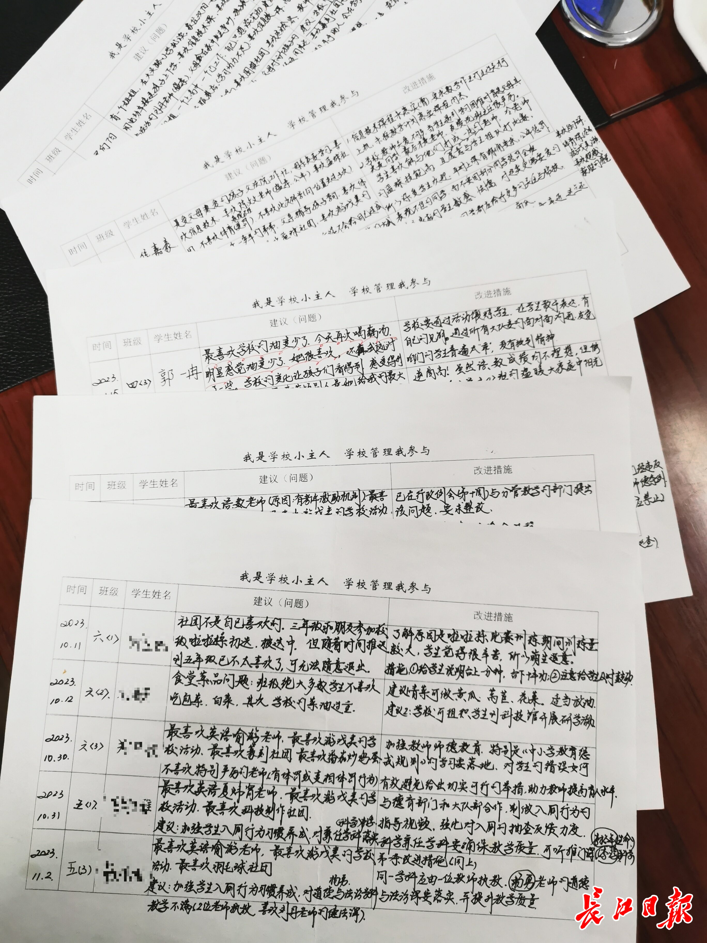 不爱说话的孩子开了口,不敢跟老师“吐的槽”也大方说了出来。共进午餐时,王飞云了解到了不少学生的真实想法,他们对学校、对老师的建议,她都一一记录下来。