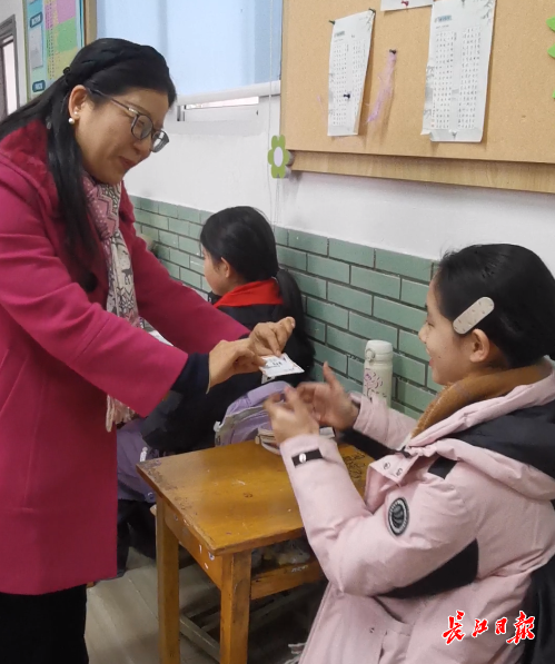 王飞云给学生送去午餐邀请卡。长江日报记者 刘嘉 摄