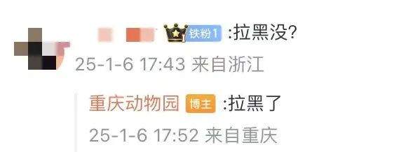 评论区,重庆动物园回应网友提问,称:扔可乐瓶的该男子已被园区拉黑。