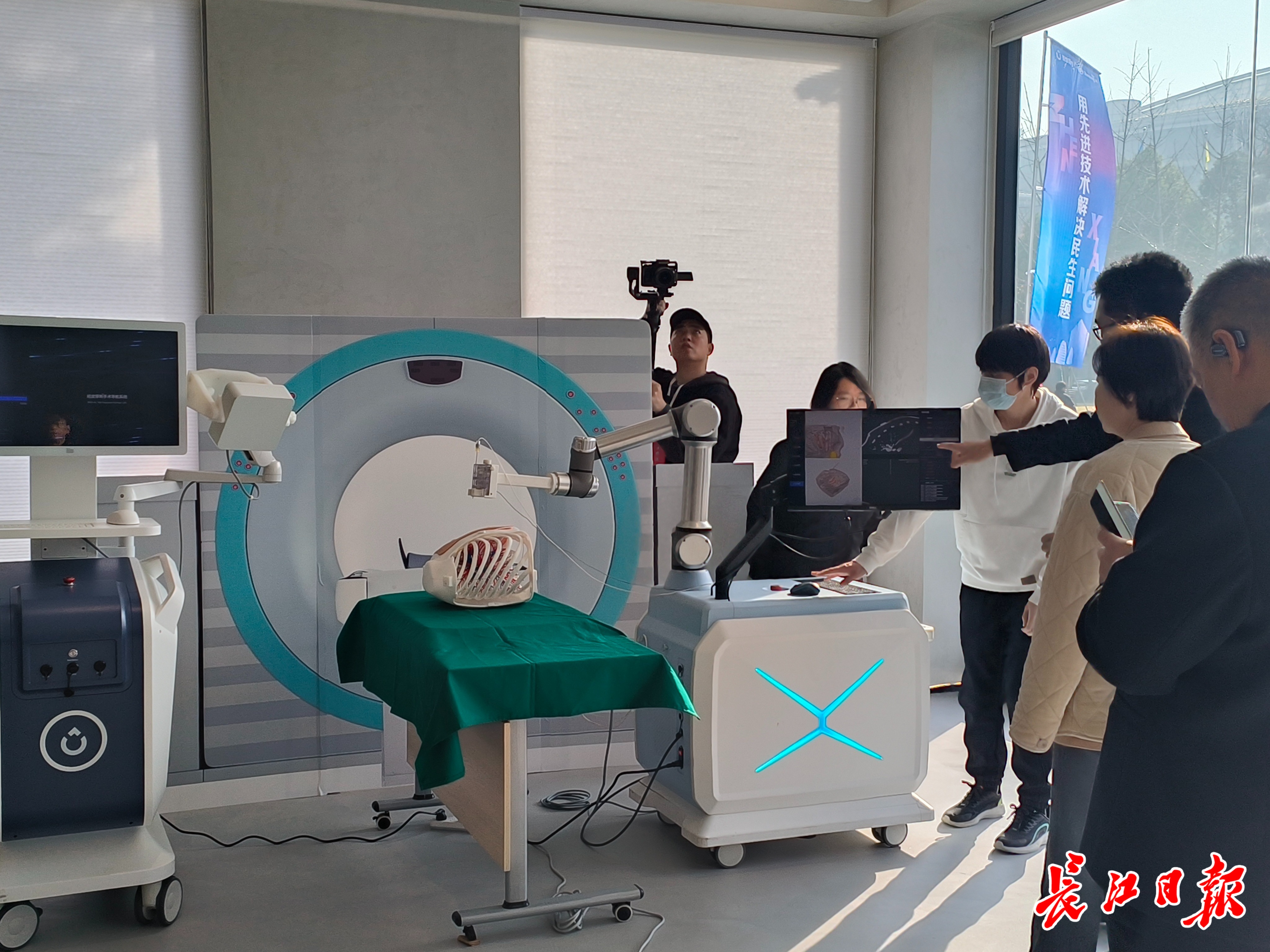 推想&臻想智慧医疗展示中心内,AI手术机器人大受关注。长江日报记者徐丹 摄