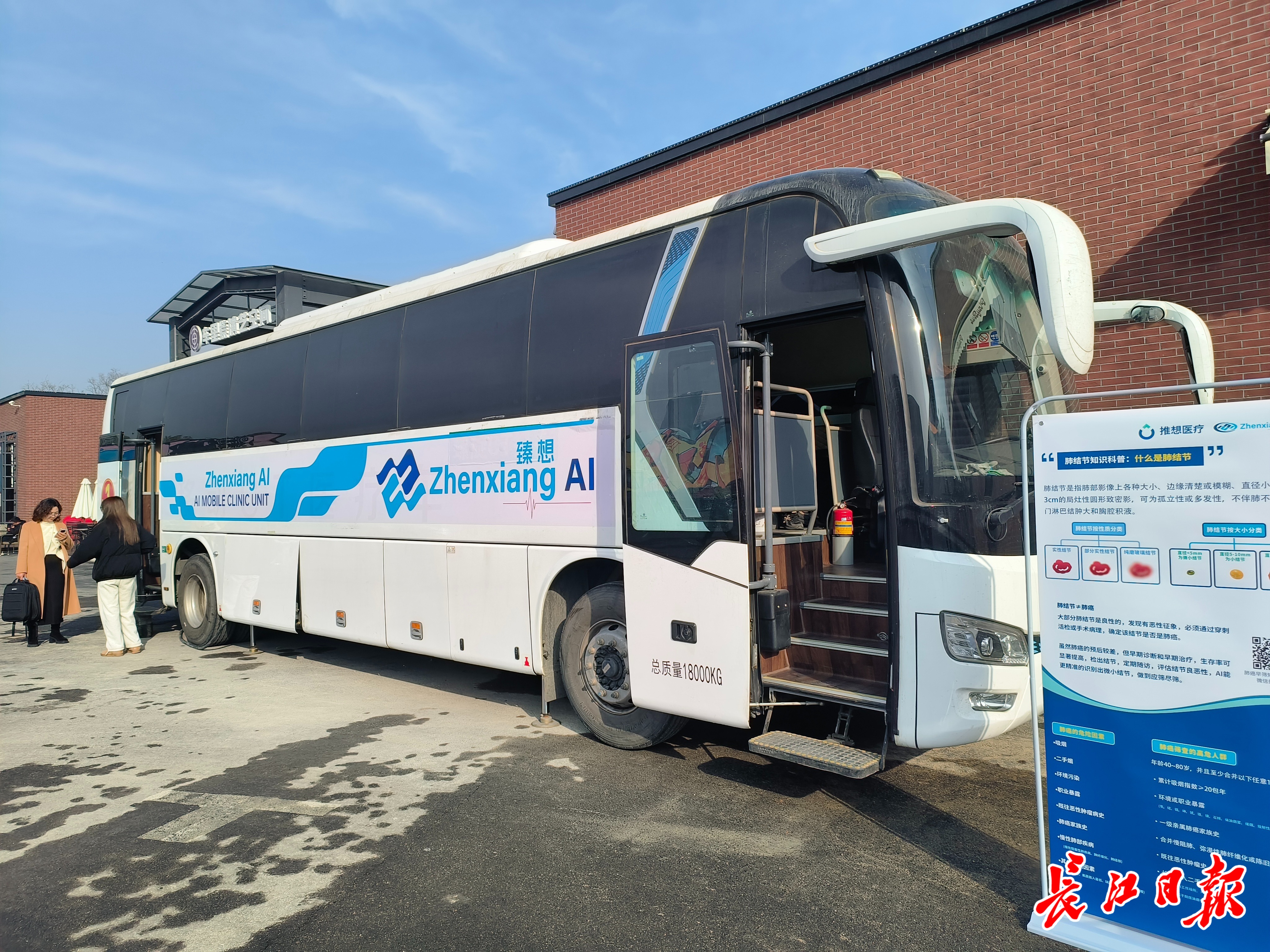 长江日报大武汉客户端1月6日讯 外观就是普通大巴车,里面却能做CT检查,检查完毕到拿取结果仅用时不到5分钟。1月6日上午,位于武汉体育中心的推想&臻想智慧医疗展示中心启幕,AI移动CT车亮相展厅外,为参观群众开启了极速体检体验。