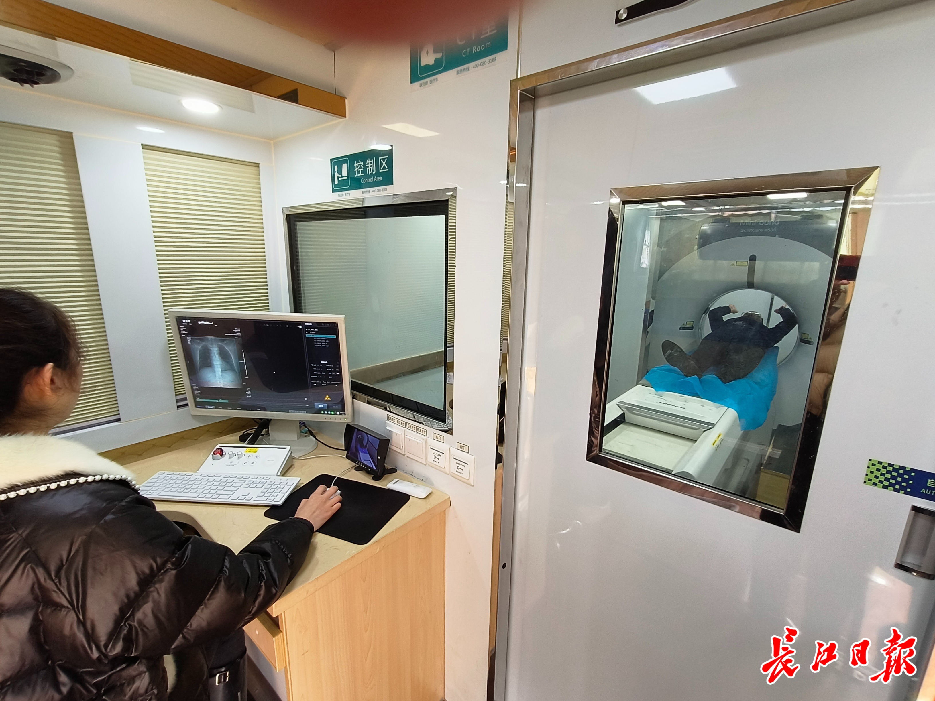体验者正在车内进行CT检查。长江日报记者徐丹 摄
