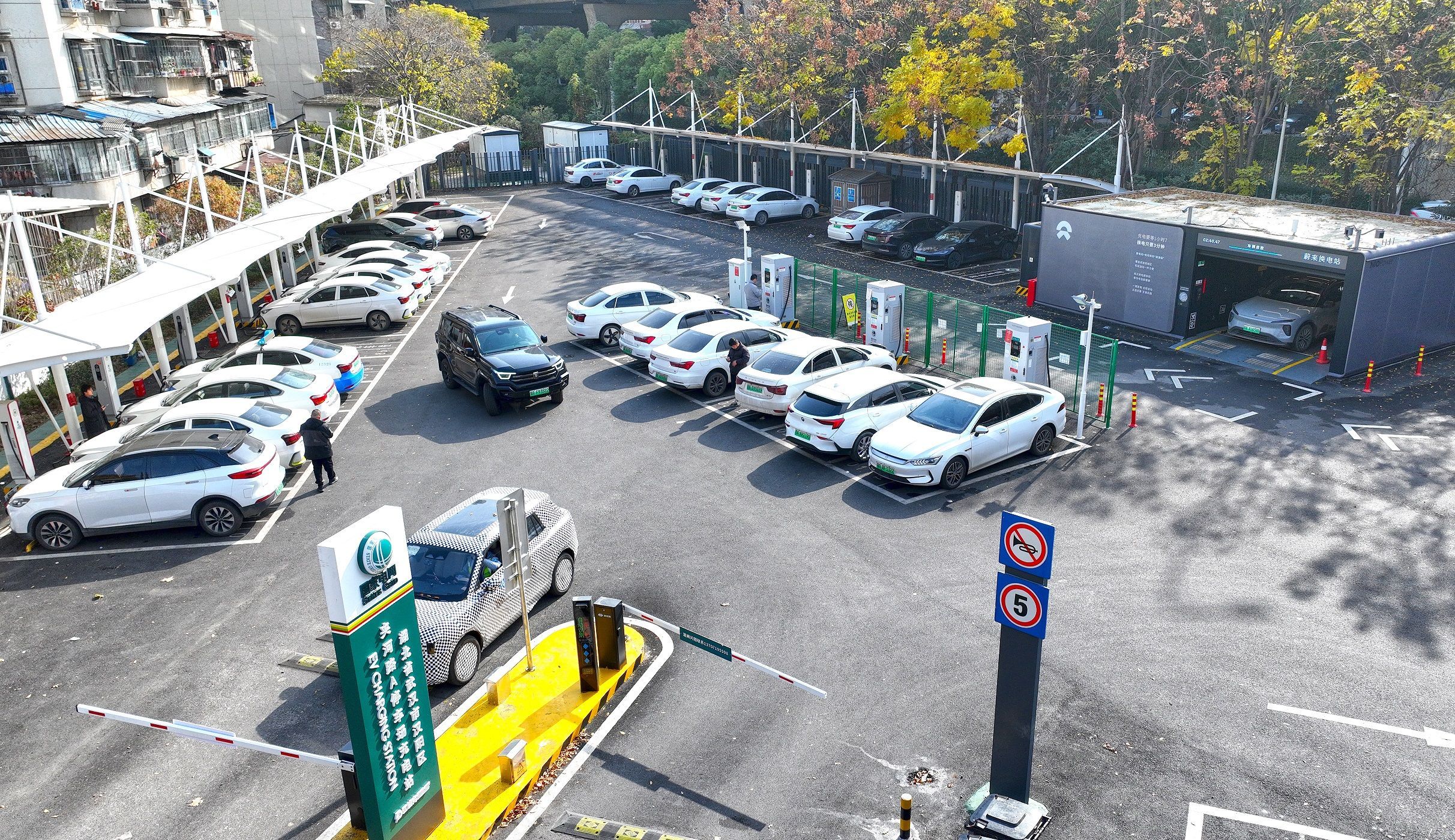 2024年年初投运的南太子湖超级充换电服务中心集光伏发电、储能、充电、换电和电池回收于一体,是我省首座融合了液冷充电设备的“光储充换放”一体化超级充电站,每天服务超300名车主。其充电棚顶铺满光伏板,平均每日产生700度“绿电”就地消纳。