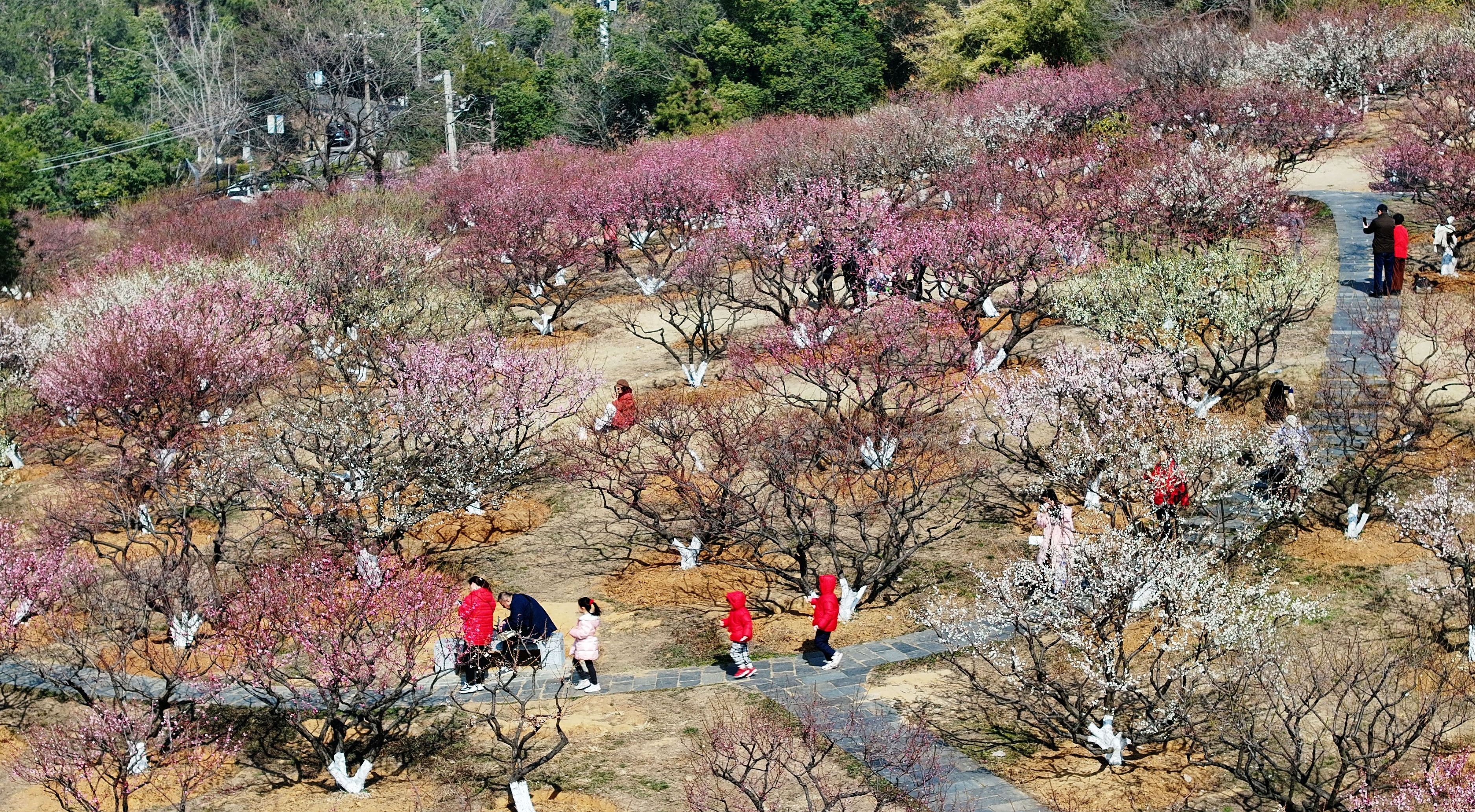 “天气好的时候,这里很适合带着孩子来露营。”市民刘先生说,“爬爬小山,欣赏梅花,还能呼吸到丰富的森林芬芳,对身体和心灵都有好处。”还有游客带着无人机前来,“天空视角看梅山,太惊艳了,漫山遍野的红、白、粉,身穿汉服的游客穿梭其间,周边就是成片茂密的森林,城市中有这样一处赏梅好去处,真的很棒!”游客李奔说。