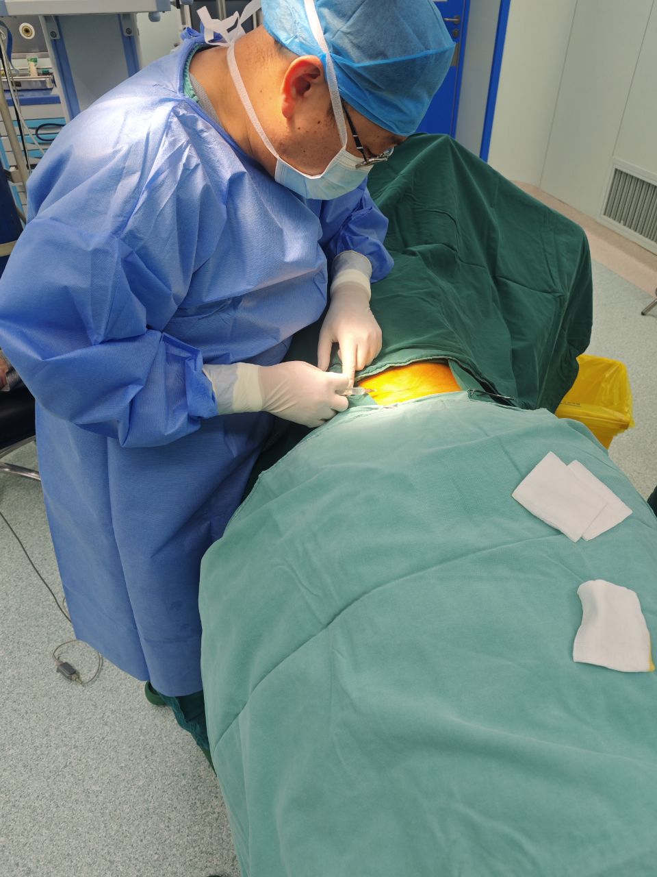 医生在患者腹部肚皮上切开约5cm小口,将药物一次性植入。