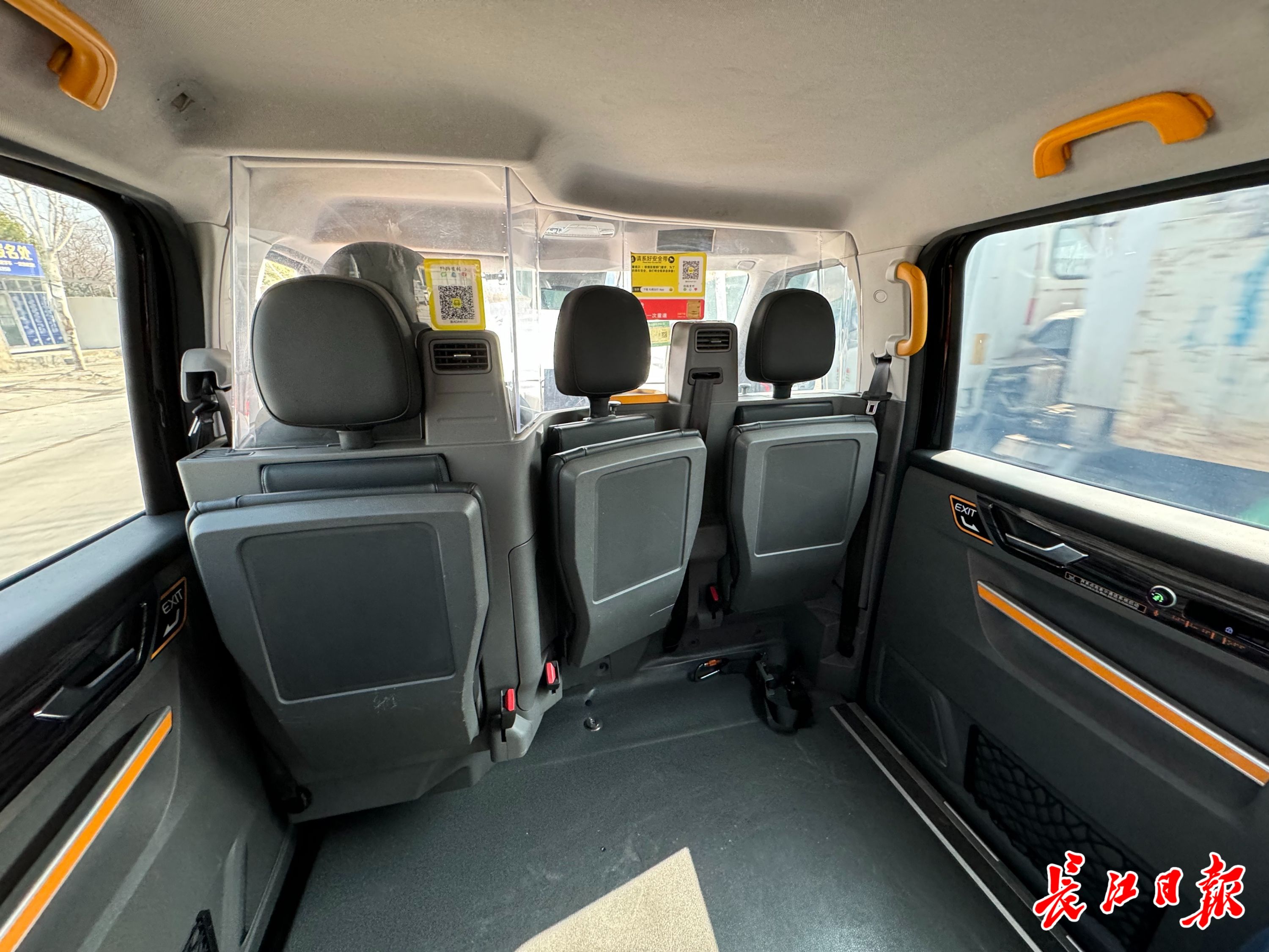 乘车时,记者注意到,副驾驶室设计为行李舱,车内还有90°旋转座椅,以及凸点盲文操作面板。驾驶室和车厢用透明挡板隔离,车门有一个通话按键,按下即可与司机通话,既保证了乘客对话的隐秘性,语音系统让司乘通话效果更加清晰。