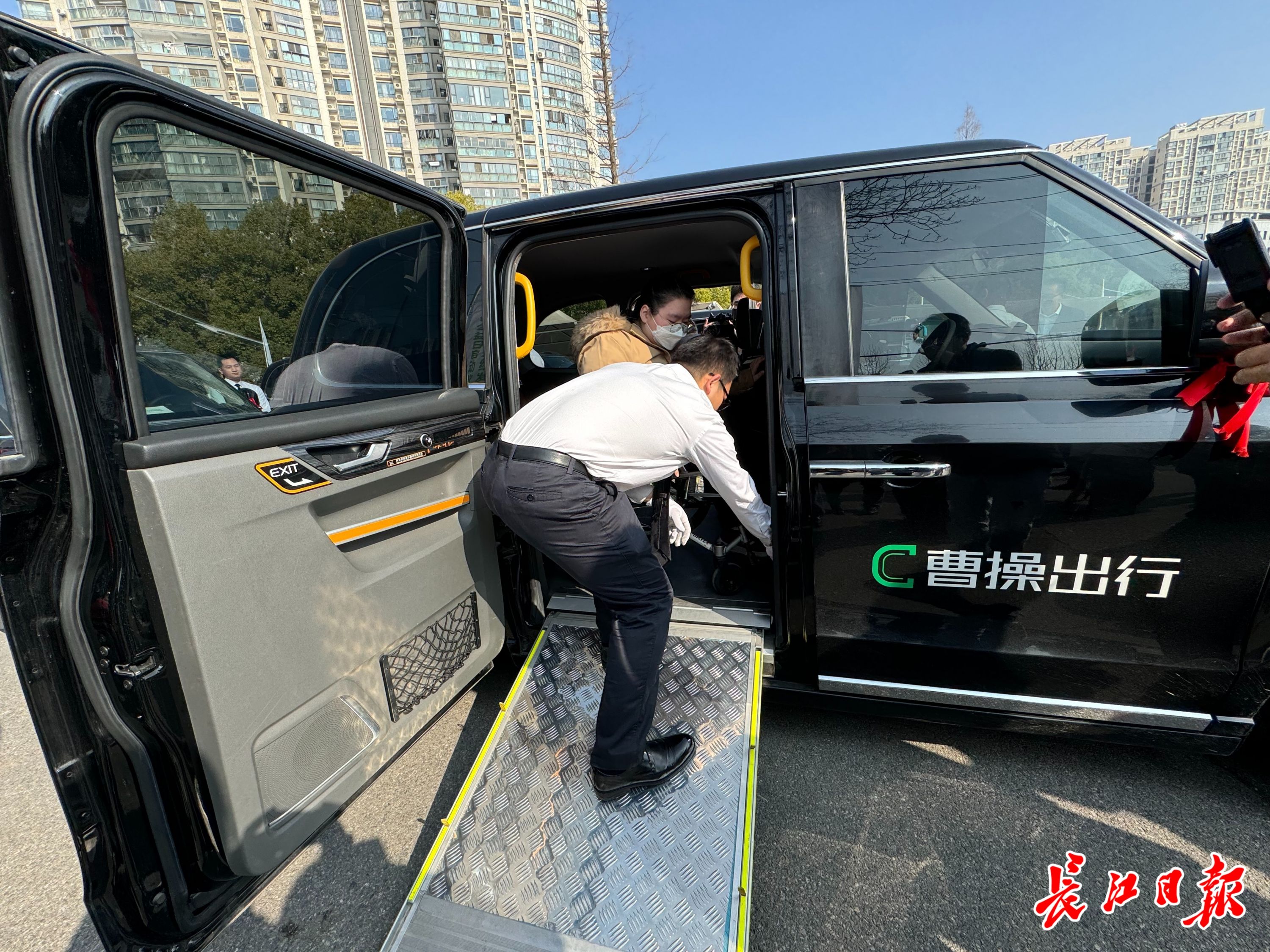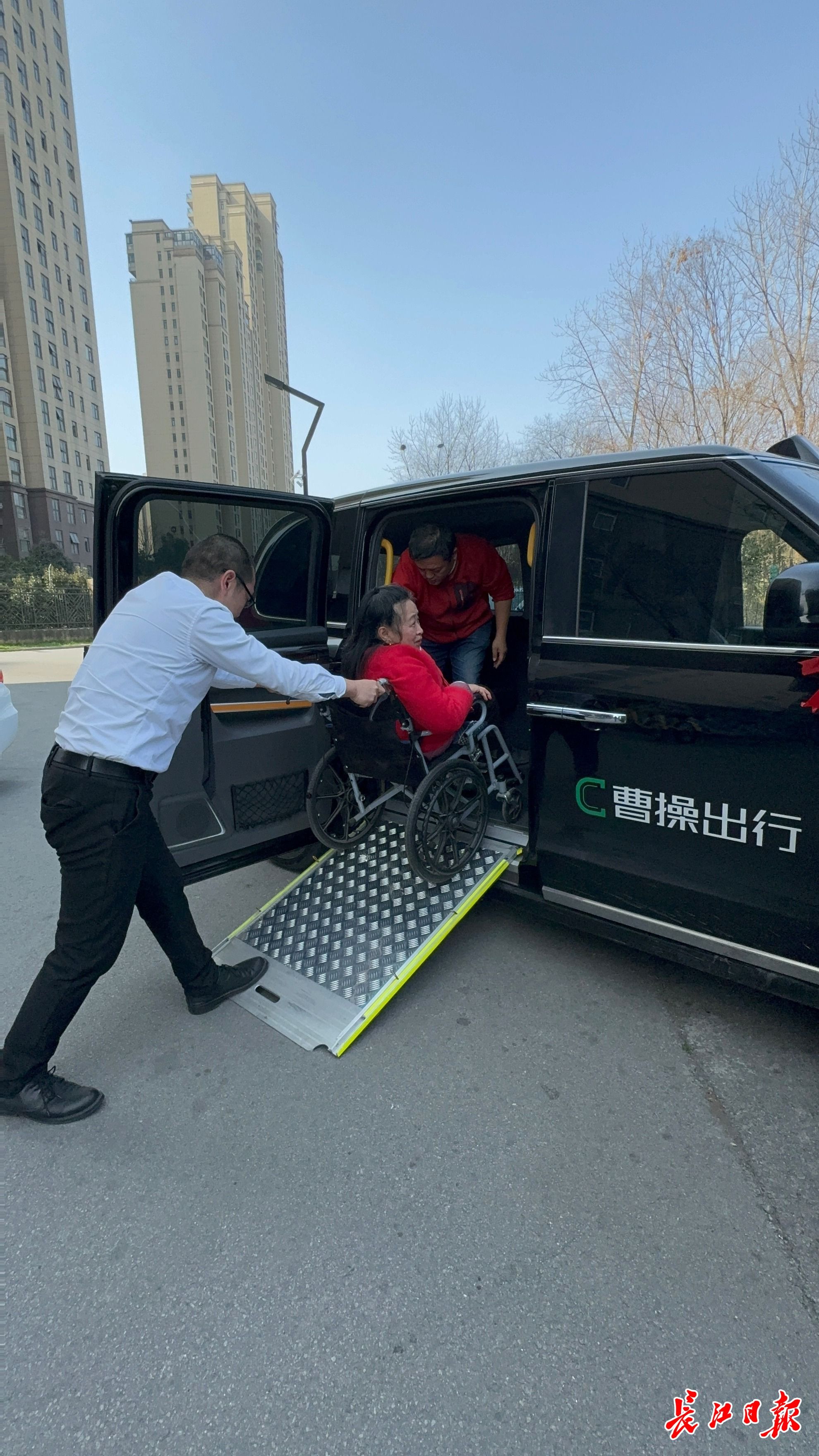 周义呈驾车平稳抵达姜笑玲住的同心雅庭小区。他停好车,先下车开门,放好踏板,把姜笑玲推下车。当天,曹操出行无障碍专车司机代表共同宣读了《曹操出行无障碍专车服务示范标准》,承诺做好适老助残出行服务。