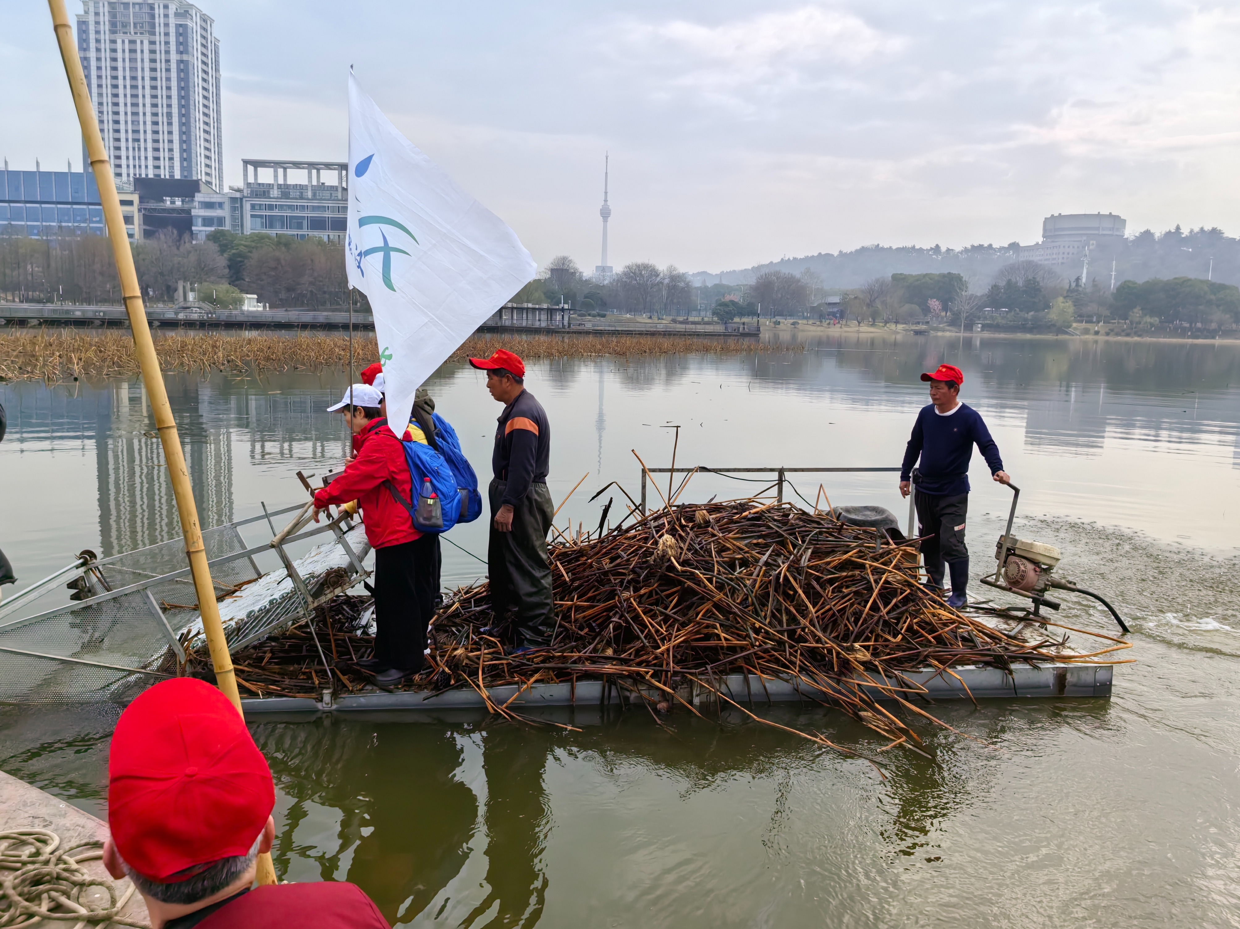 志愿者文昌植介绍,去除一部分枯萎残荷,有利于今年的小荷“冒出尖尖角”,也有利于单株荷花开得更洒脱,让湖面景观效果更佳。