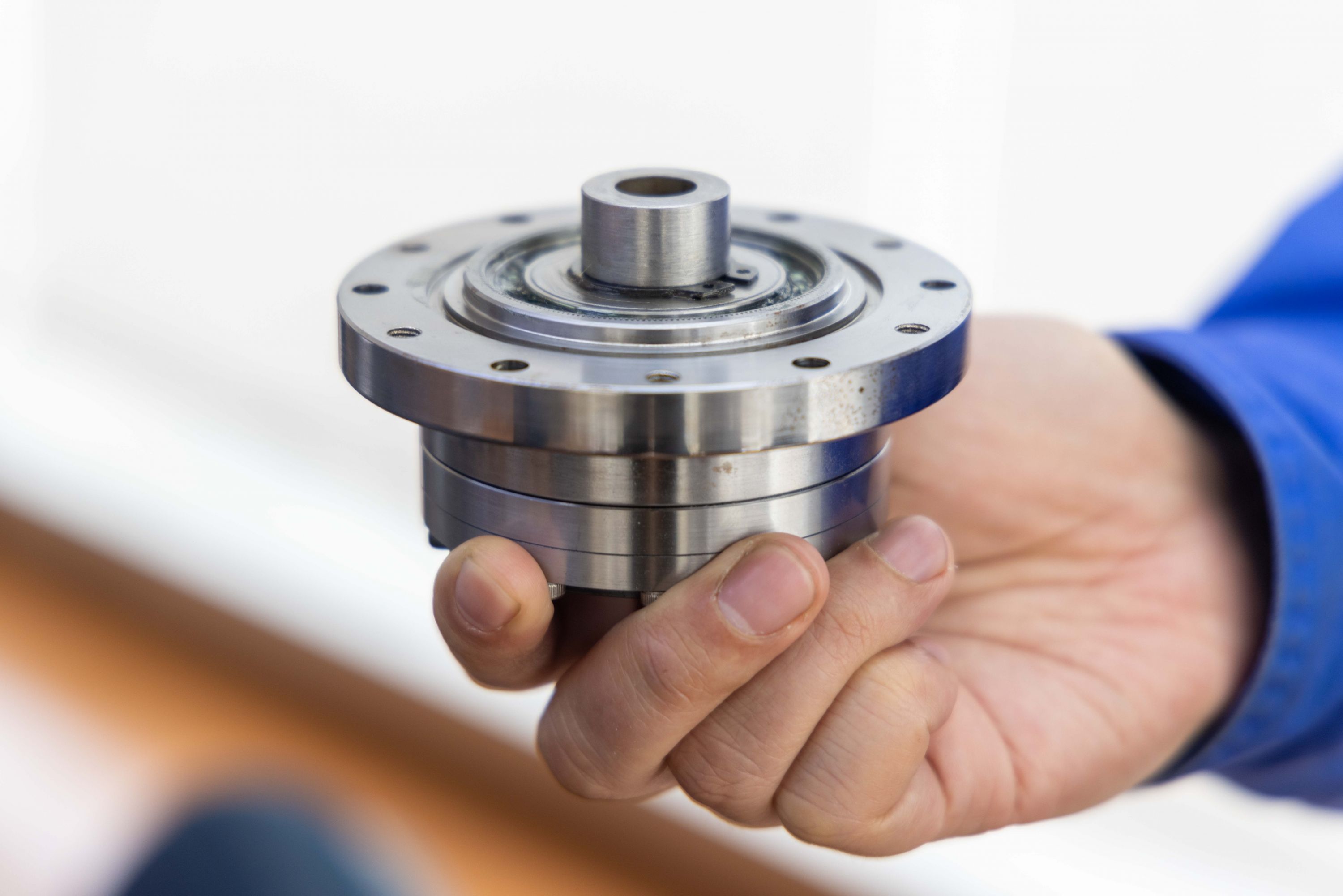 泛洲精密研发负责人代群展示公司自主研发的谐波减速器样品。通讯员孙晓飞 摄