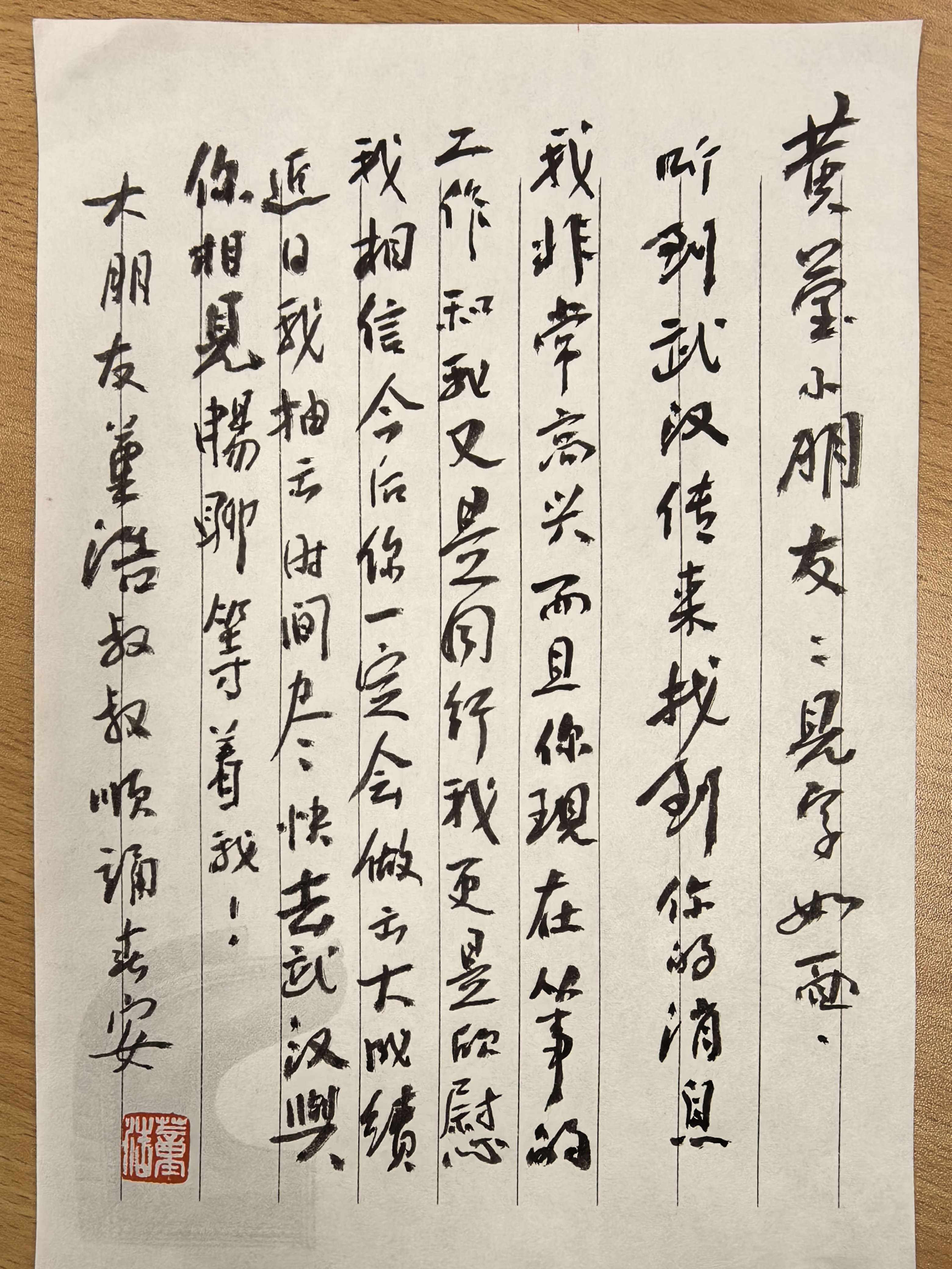 他在信中写道:听到武汉传来找到你的消息,我非常高兴。而且你现在从事的工作和我又是同行,我更是欣慰。我相信今后你一定会做出大成绩。
