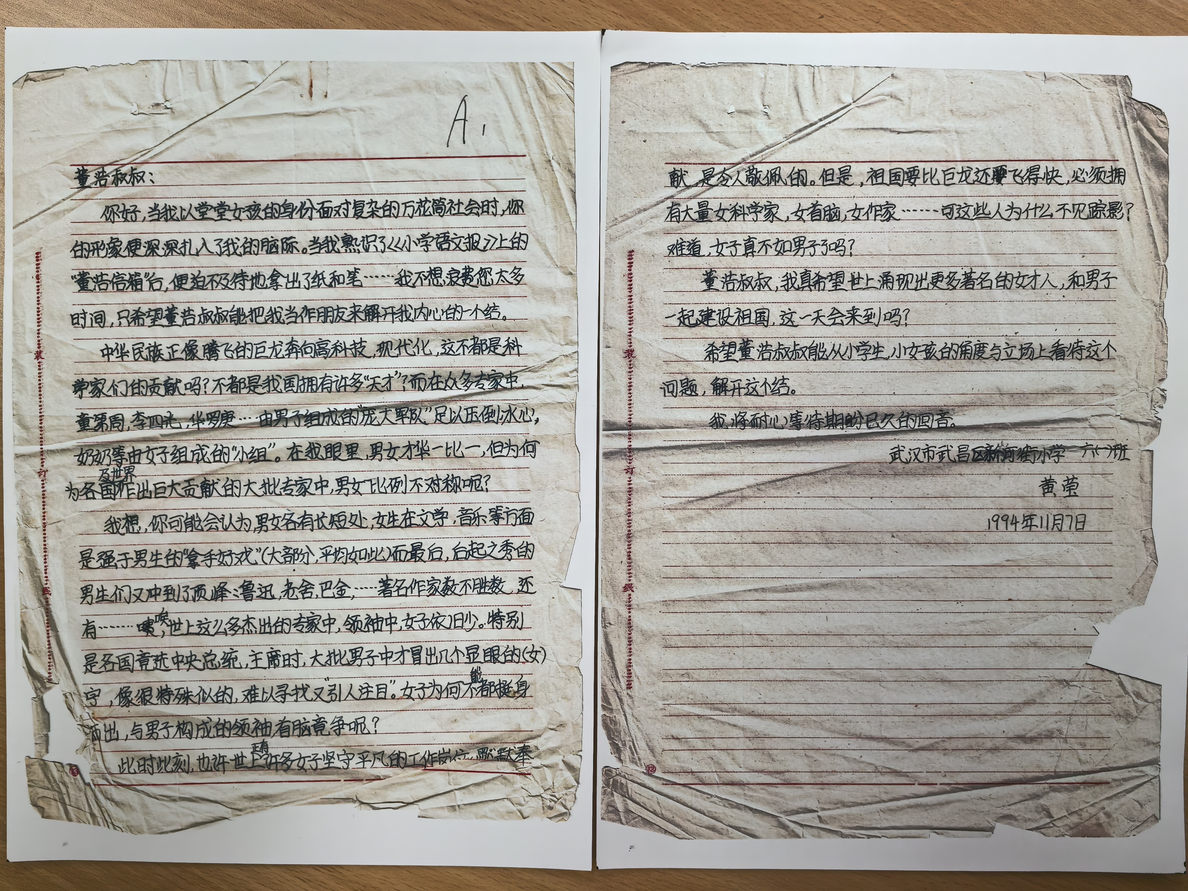 黄莹30年前写的信。