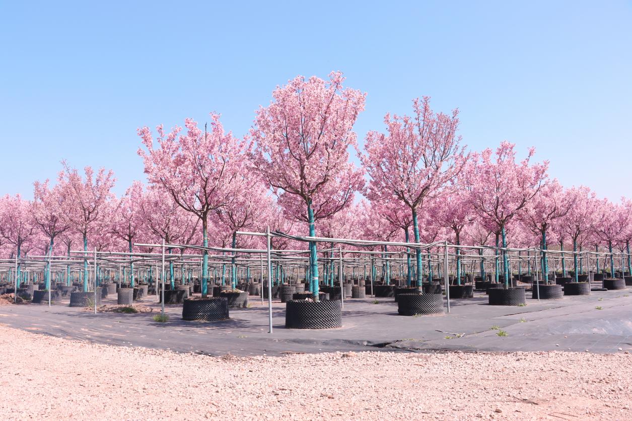 邓玉明介绍,苗业公司从1997年就开始种植培育樱花树,至今已有16个品种。既有阳光樱这类知名品种,也有奖章樱、楚锦、郁金樱等特色品种。苗业公司各苗圃樱花树苗储备共计有6000多株,是武汉最大规模的樱花种植基地。一部分用于园林绿化工程,一部分用于租摆服务。