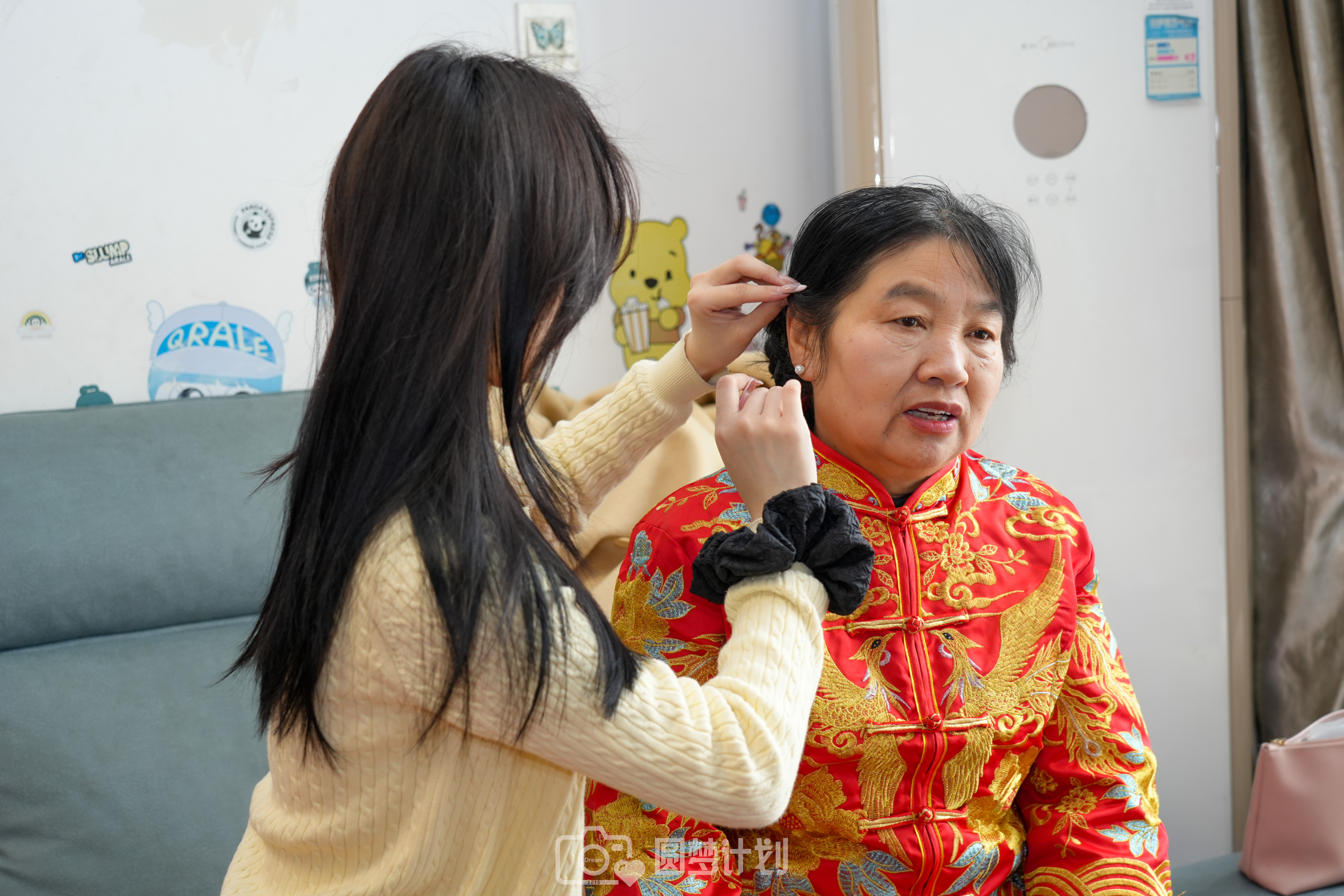 这是武汉工程科技学院“圆梦计划”团队开展今年雷锋月系列活动的第一站。当天上午,志愿者们如约来到董继高家中,为他们化妆并拍摄。队长王钰婷介绍,这个月,已有20多对老人报名参加拍摄。