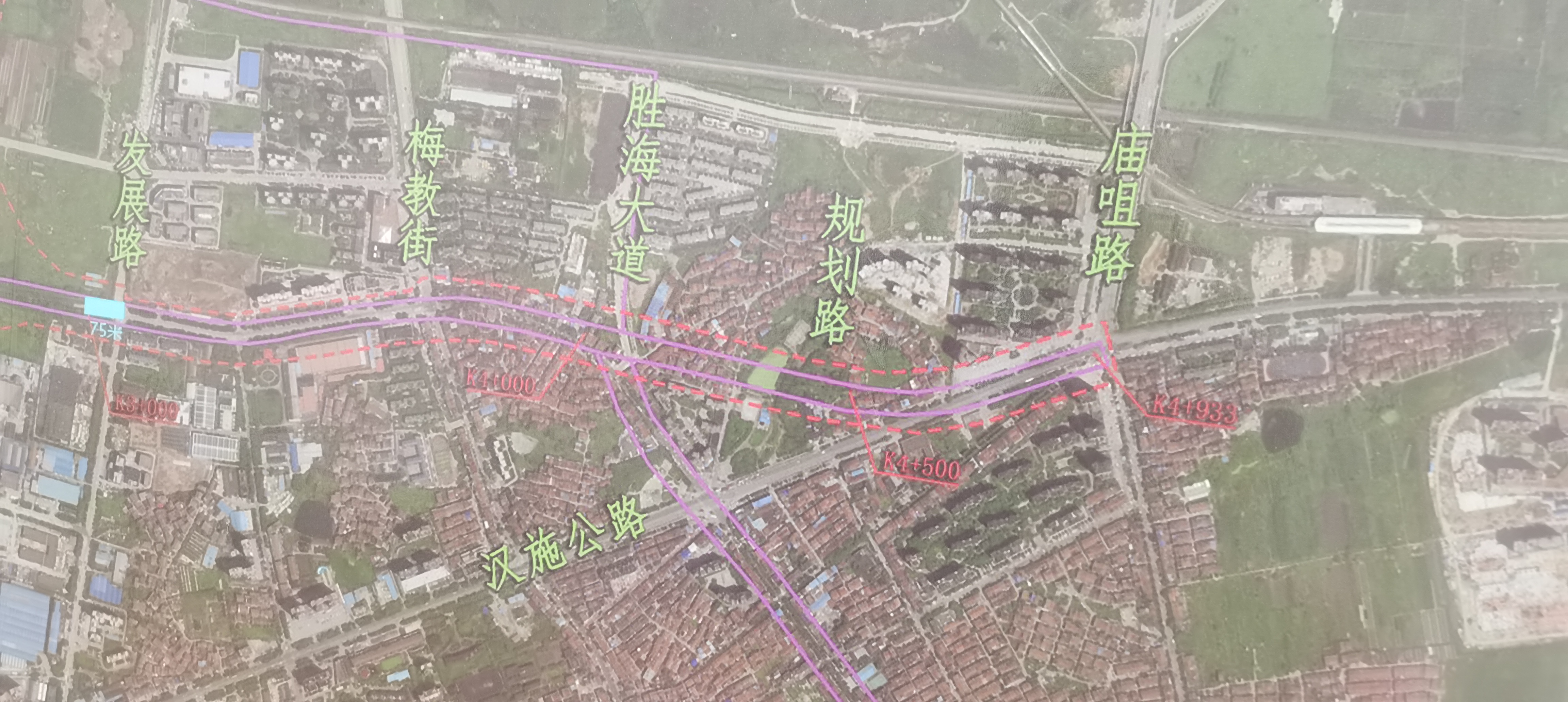 由武汉城建集团旗下城建公司负责施工的江湾大道,西起滠水大街,东至汉施公路,是长江新区滨江区域的东西向交通干道。项目为城市景观型主干路,设计双向六车道,四条辅道,主道设计车速60公里每小时,辅道设计车速30公里每小时,全线设计长度4560米,建设宽度90至100米。