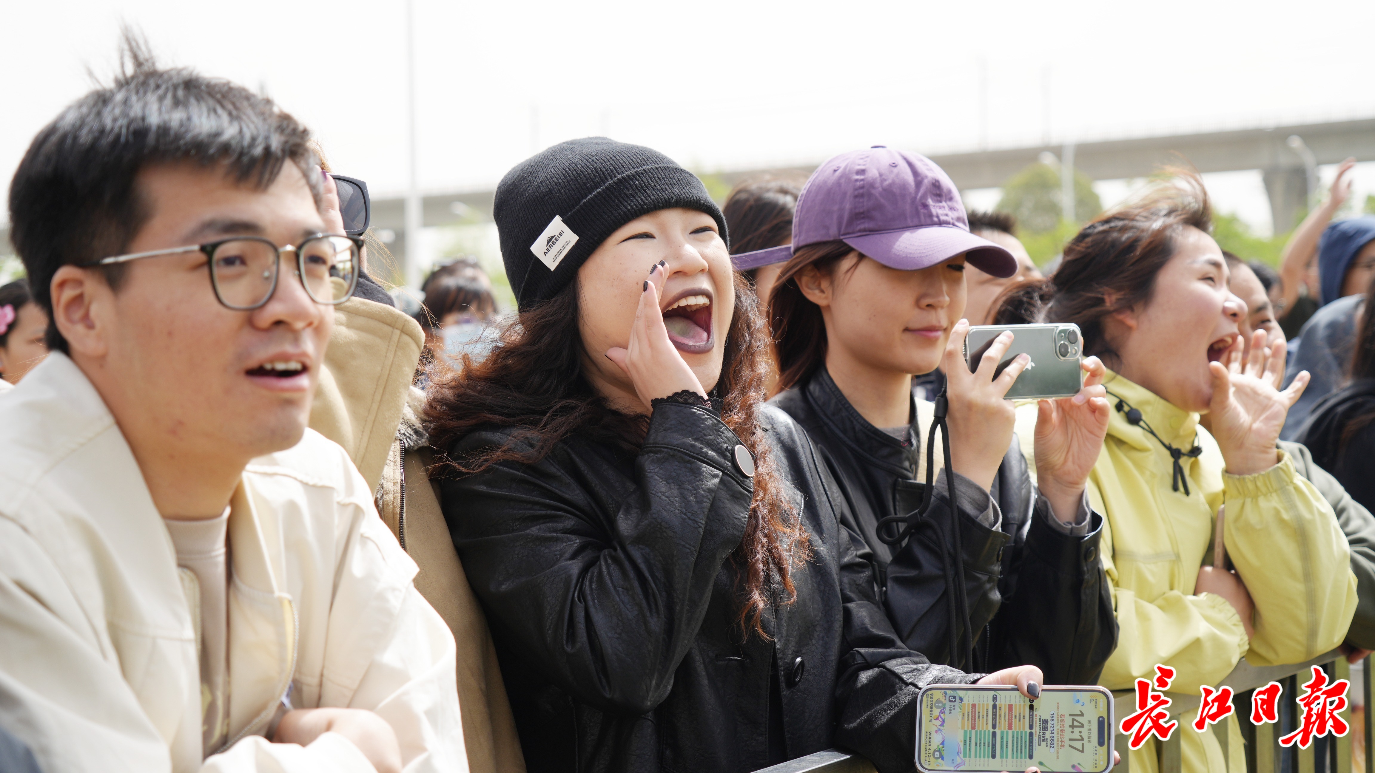 长江日报记者在现场看到,不到下午1点,源源不断的大批观众涌向音乐广场的检票通道,其中大多为年轻人。他们穿着靓丽,精致的面容上洋溢着兴奋的笑容,哪怕被大风吹乱头发也丝毫不减风采。