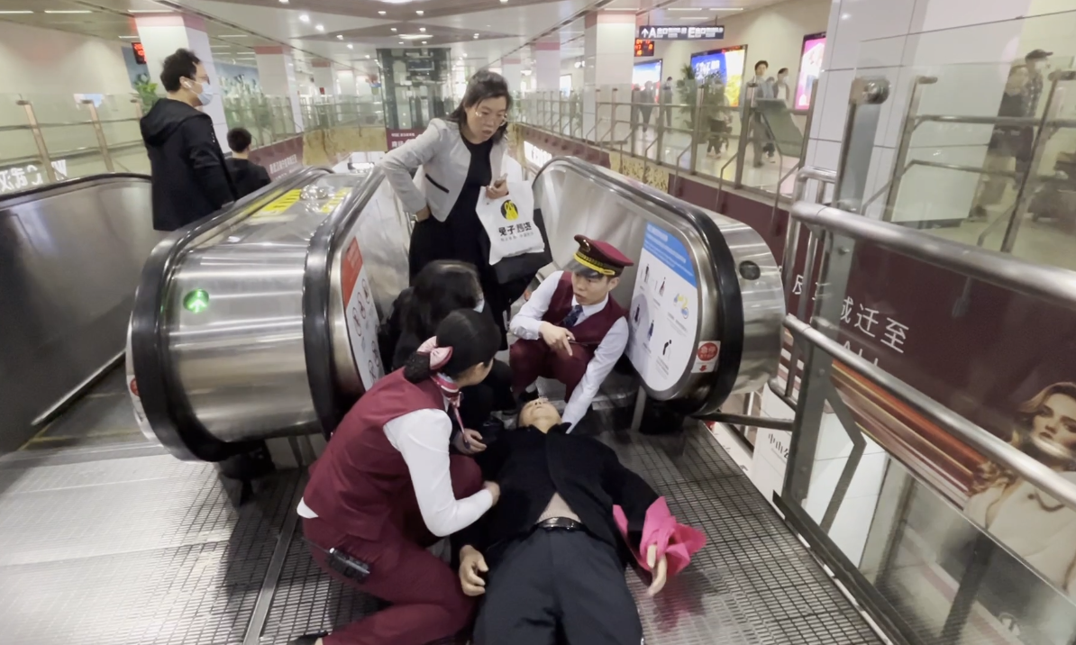 长江日报大武汉客户端4月15日讯 4月13日,一名七旬老人突然晕倒在武汉地铁站电扶梯上,附近乘客及时出手抬出电梯,专业医生和地铁工作人员一起紧急救助,5分钟内将老人转送至医院救治。