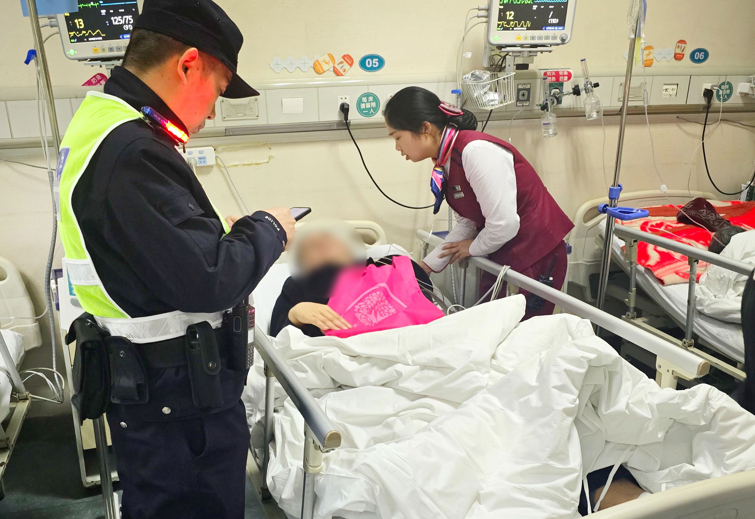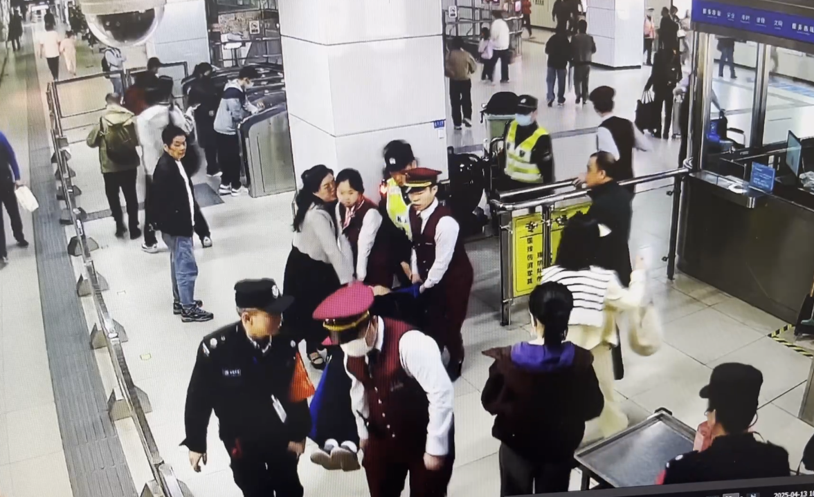 “您放心,没事的,我们会帮助您!”很快,陈珊赶到现场。老人有轻微呼吸,眼睛紧闭不能说话,她安抚老人同时,通知行车值班员广播现场寻找医护人员,安排其他工作人员拨打急救120。