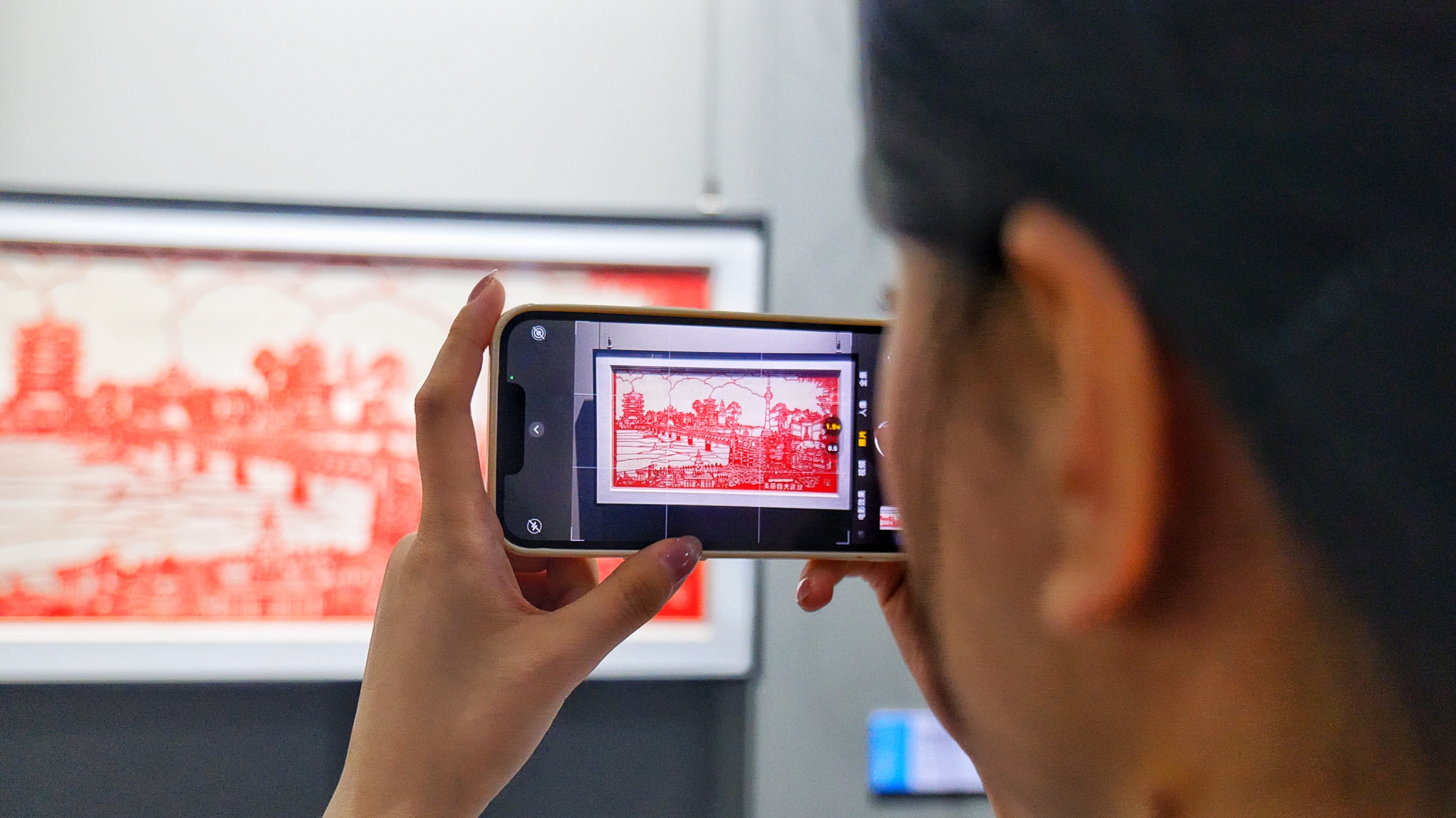 游客打卡“光之剪影”中法剪纸艺术交流展。赵端 摄