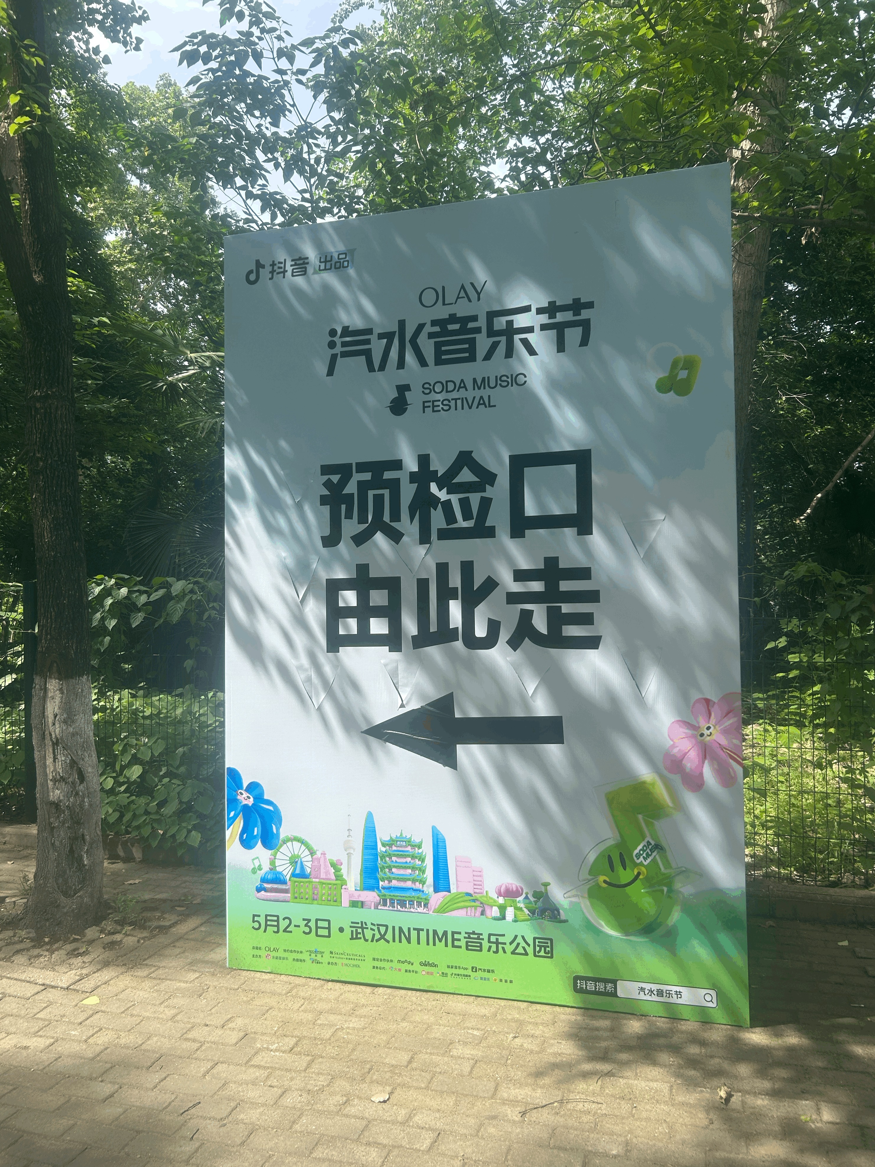 汽水音乐节入口处摆放着指引立牌。