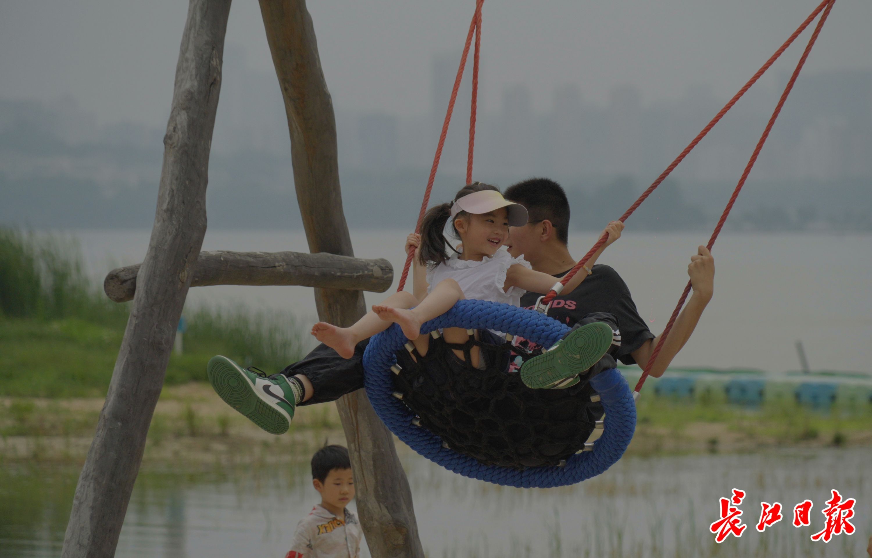 游客在湖畔的秋千上享受湖风吹拂的快乐。记者何晓刚 摄