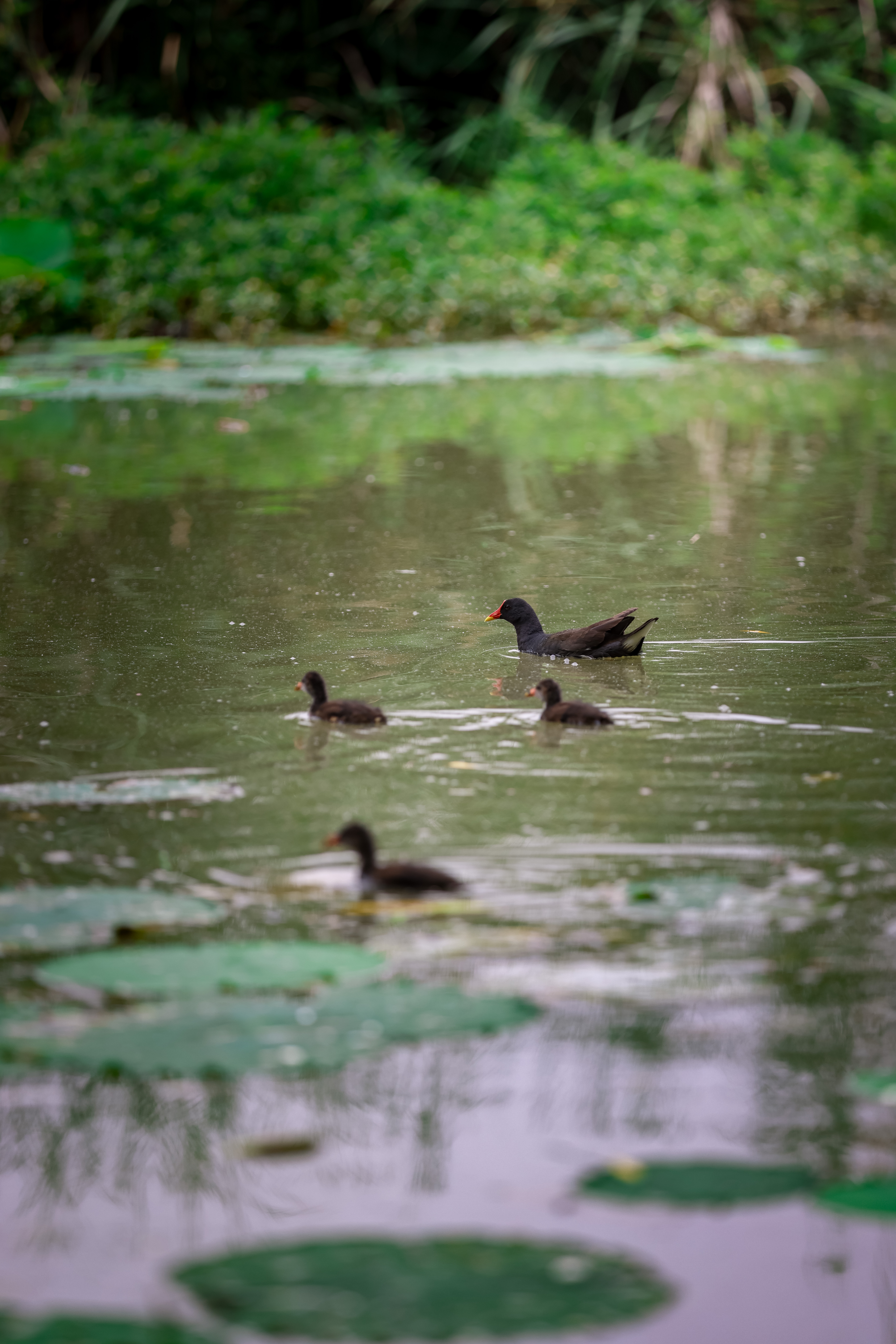 在公园宽阔的湖面,成群结队的黑水鸡和斑嘴鸭的宝宝们,正欢快地觅食、嬉戏。“鸟宝宝不需要爸妈带,自己就能活动吗?”今年9岁的万宇皓率先抛出疑问。曹辉解释道,黑水鸡的行为和灰喜鹊类似,当年孵出长大的幼鸟会帮助父母喂养下一窝的弟弟妹妹;而斑嘴鸭天生具备游泳、捕食的技能,所以亲鸟放心让宝宝们自由活动。