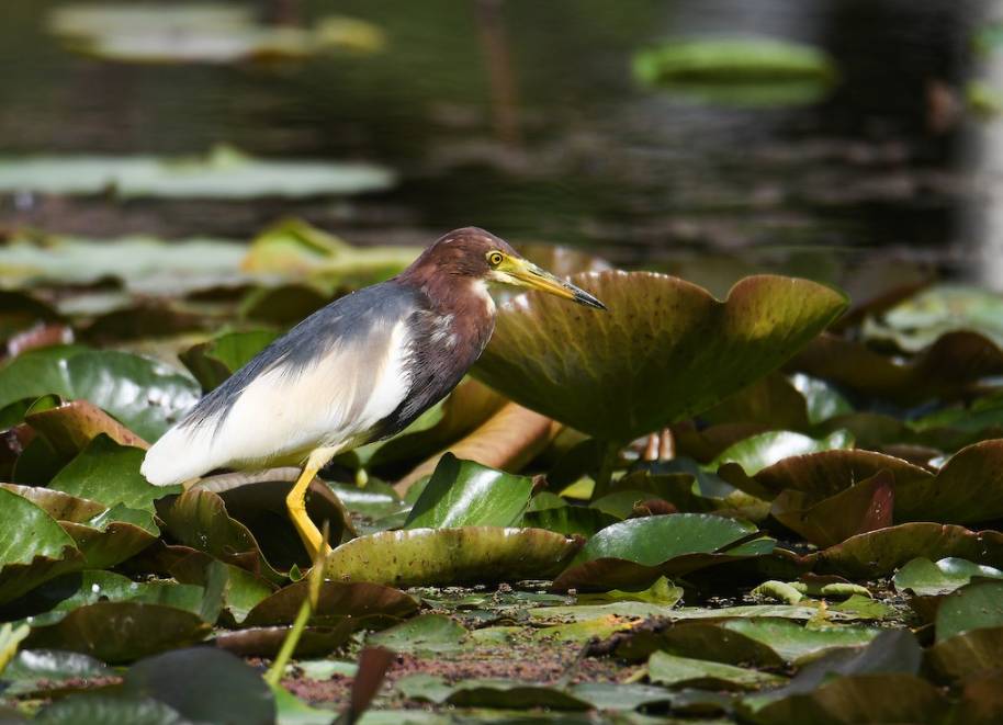 荷塘边,一只身体呈暗黑色、在阳光下泛着些许灰色光泽,颈部还有橙黄色条纹的鸟类吸引了大家的目光。“这是什么鸟?以前从来没见过”,今年10岁的肖芷夏充满了好奇。周玉栋介绍,这是武汉市区比较少见的夏候鸟黑鳽,它们从南方热带地区迁徙而来,偏爱野生的湿地环境,比如水草丛、荷塘。而且黑鳽多在晨昏活动,快中午还能看到它们的身影十分难得!这也是黑鳽今年首次现身月湖风景区。“黑鳽此前只在东湖、沉湖、涨渡湖等固定区域有观测记录,去年开始在月湖也能见到它,今天再次观察到则有力地证明了武汉城市中心的湖泊公园环境越来越好了。”周玉栋强调。