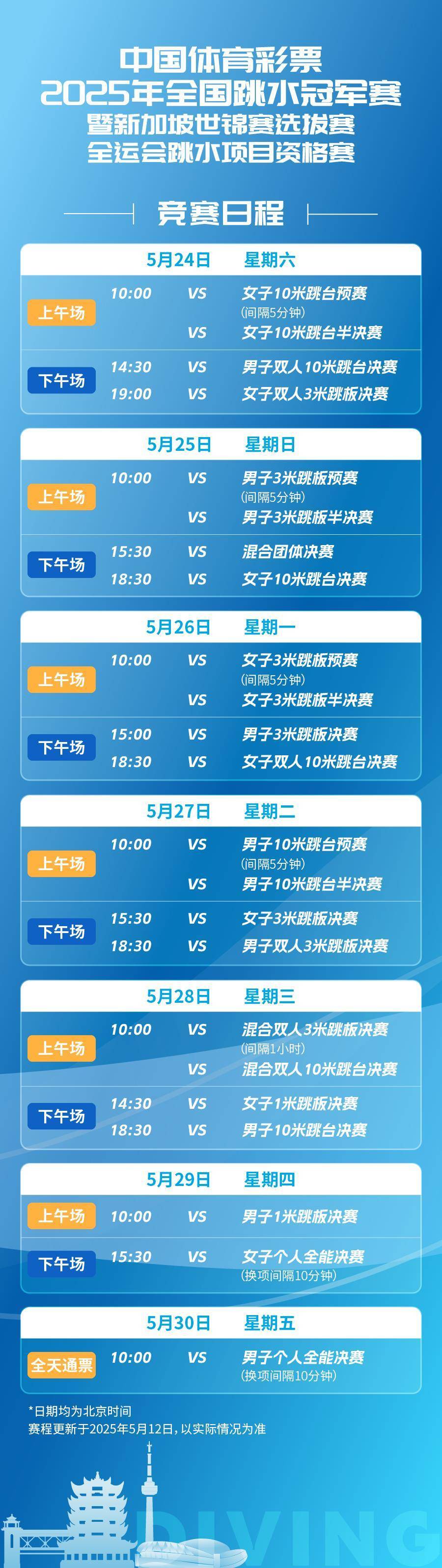 长江日报大武汉客户端5月24日讯(记者张琳)5月24日,2025年全国跳水冠军赛暨新加坡世锦赛选拔赛、全运会跳水项目资格赛在武汉体育中心开赛。在当天下午结束的男子双人10米台决赛中,湖北小将程子龙和广东朱子峰的“鄂粤组合”表现出色,以领先第二名超26分的优势摘得首金,广东队郑钧之/莫永华和天津队的黄子淦/杨凌分列第二、第三名。