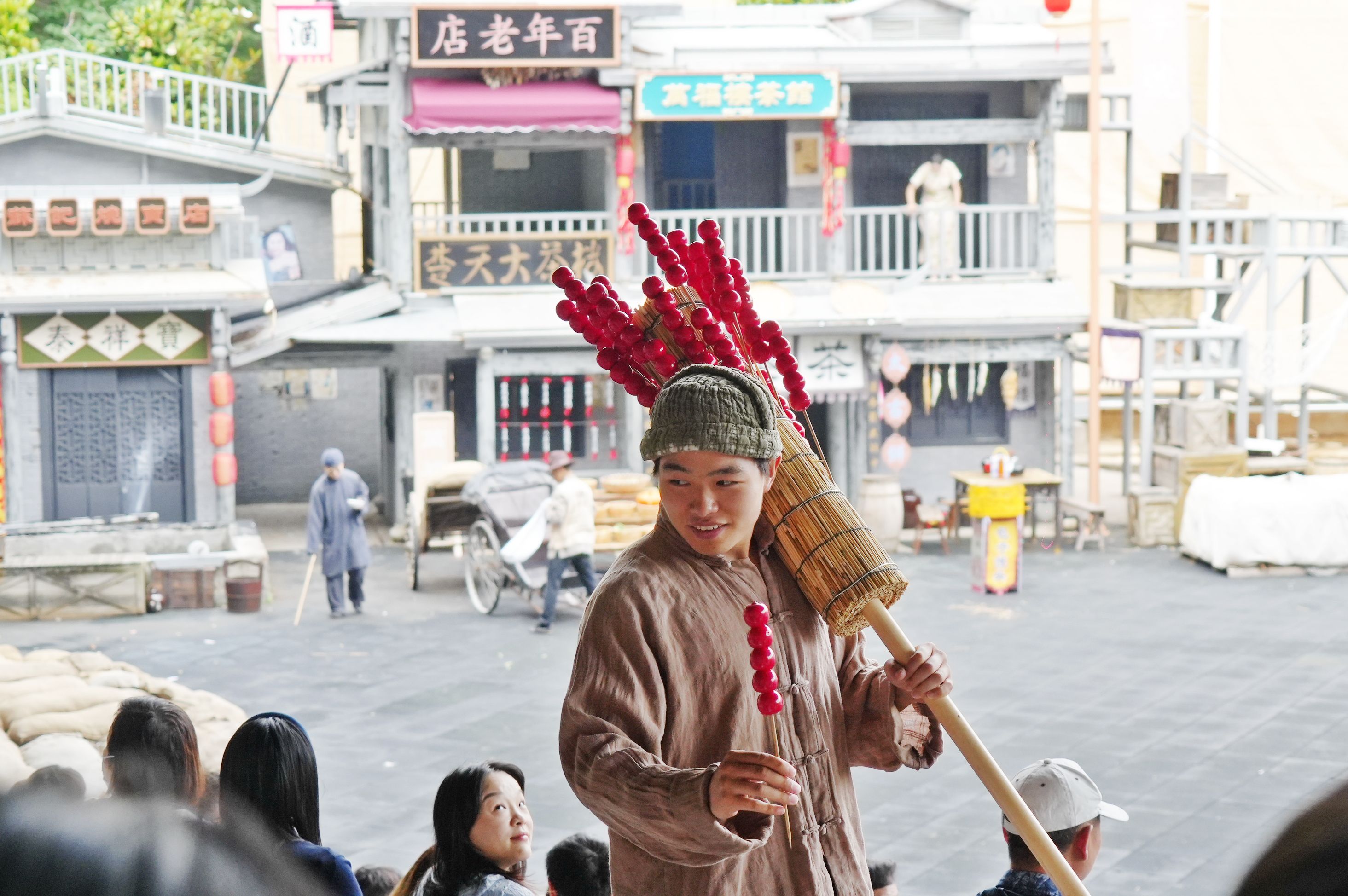 景中游变为“戏中人”。游客漫步在具有年代感的街区,随时可能偶遇“戏精”演员上演的即兴快闪情景剧,可解锁扁担工、说书人、乞丐等NPC隐藏剧情互动。