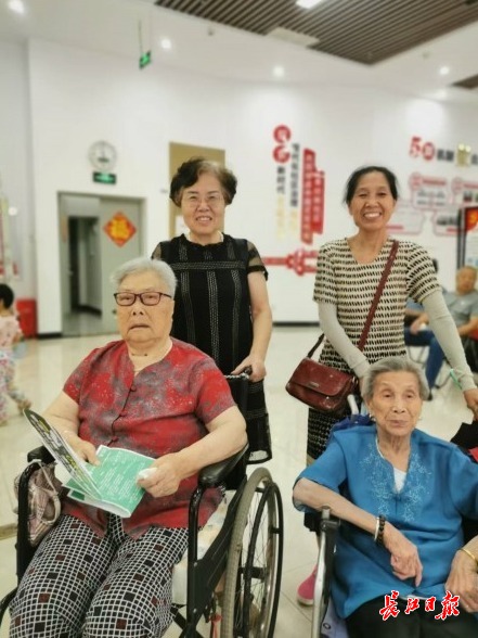 63岁的邱夏莲指着轮椅上93岁的母亲宋银梅说:“您看我妈,刚才跟着拍子手动得欢着呢!我出去办事把她放这儿,有老街坊们帮着照看,放心。”70岁的黄小玲正给95岁的母亲陈琼英揉肩膀,她笑着补充:“我们这是‘小老人’照顾‘老老人’。社区周四周五有健康讲座,我学会健身操,自己活动,又带母亲动,一举两得! ”