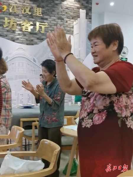 长江日报大武汉客户端7月27日讯(记者刘睿彻)女儿推着轮椅上的老母,儿子搀扶着父亲,一起在社区纳凉点里跟着节拍舞动双手,拍打身躯,稍作歇息,大家又结伴转到隔壁的幸福食堂,打上三四个小菜,说说笑笑往家走。