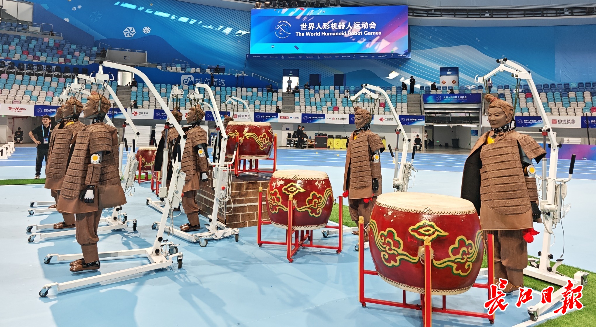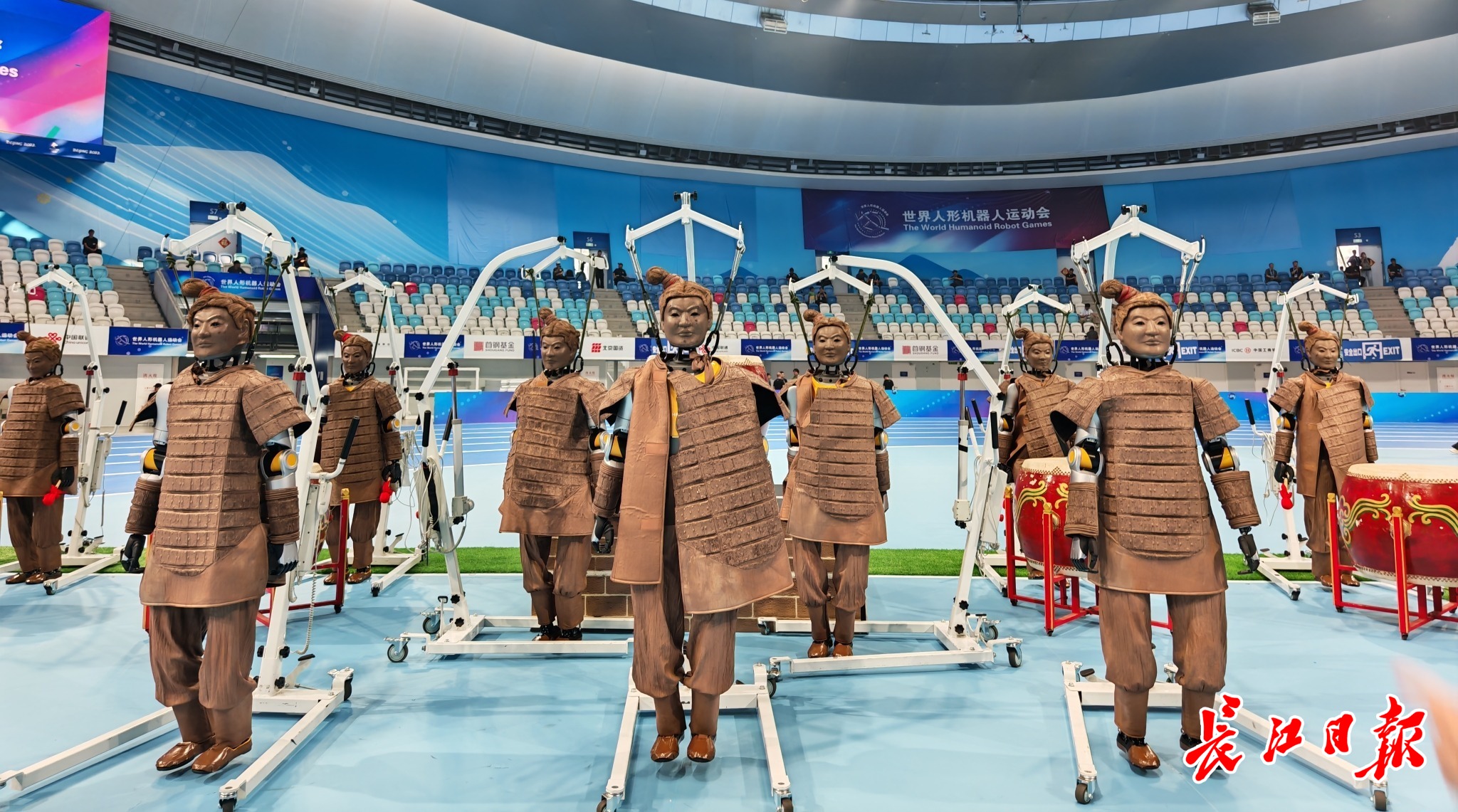 长江日报大武汉客户端8月14日讯(驻京记者柯丽芬 通讯员陈蔚然)8月14日晚,在2025世界人形机器人运动会开幕式上,9台来自武汉的人形机器“光子”化身秦俑,身披3D打印的秦俑战甲,敲响绛州大鼓。