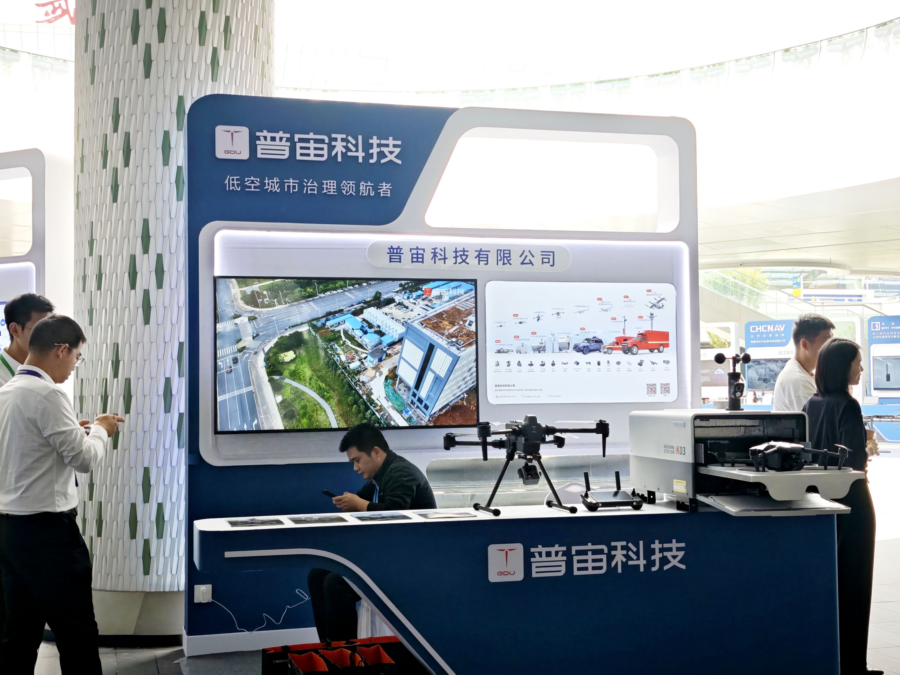 在普宙科技有限公司展台前,不同型号的黑色无人机整齐排列。“我们研发的S200系列无人机,搭载有机载算力,红外热成像载荷能透过烟雾定位火源,自动巡查监控火灾隐患。”普宙科技解决方案经理黄侃说:“通过高清红外云台和AI算法,它可以实现人群密度监测,担任马拉松、大型演唱会等活动的安保,还能实时识别渣土车违规、火点隐患等场景。”