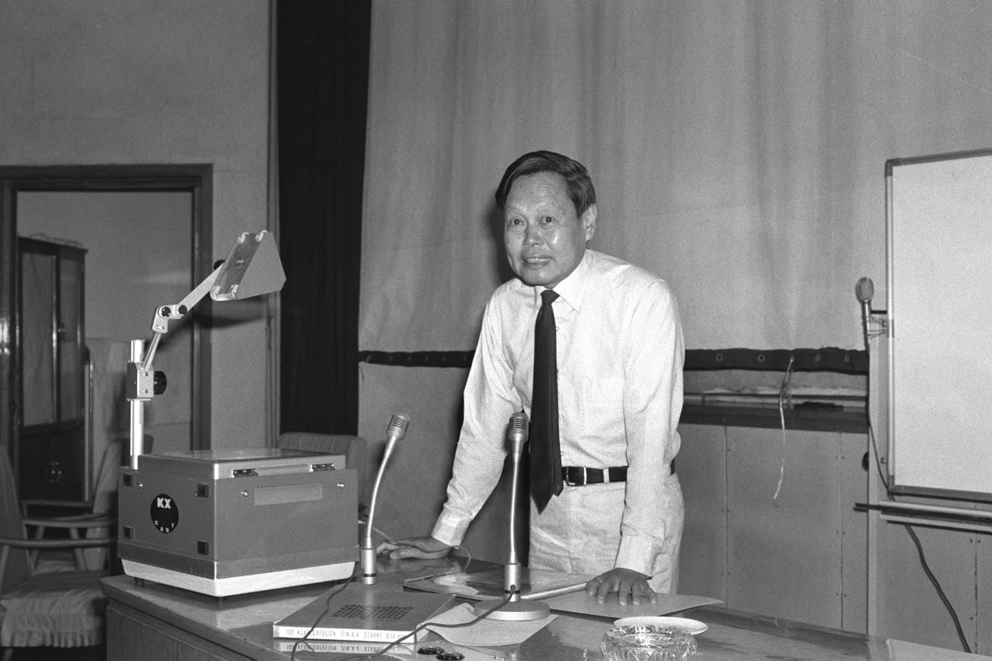 1986年5月26日,杨振宁在北京向来自全国各地的物理研究生和科研人员作报告。新华社记者兰红光 摄