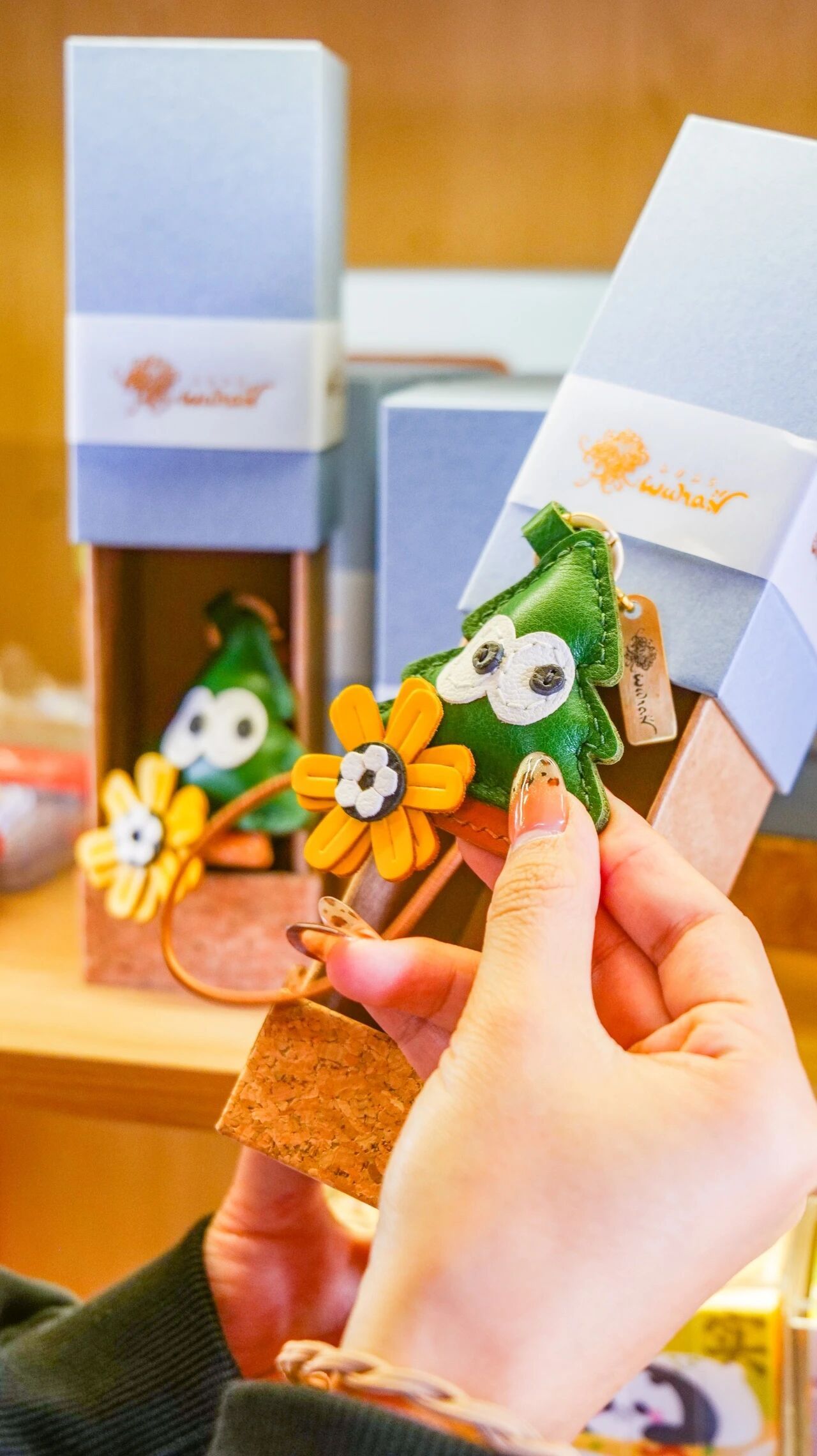 非遗文创的匠心手作“轻松开菊”,把“青松”“菊花”“汉超”元素设计成独一无二的菊展限定挂件,成为揣在兜里的非遗浪漫。