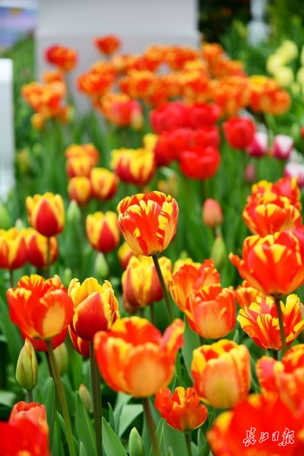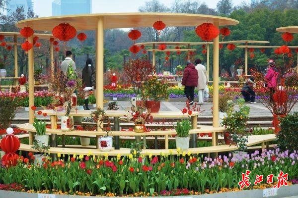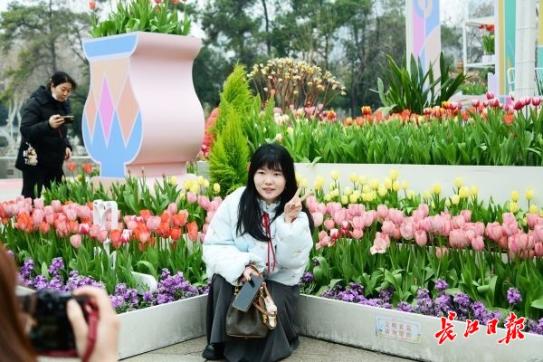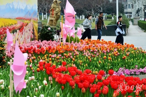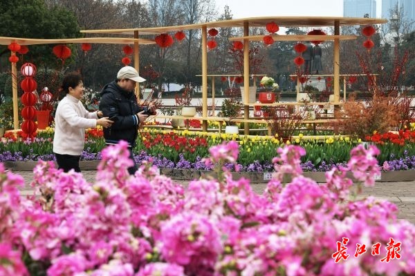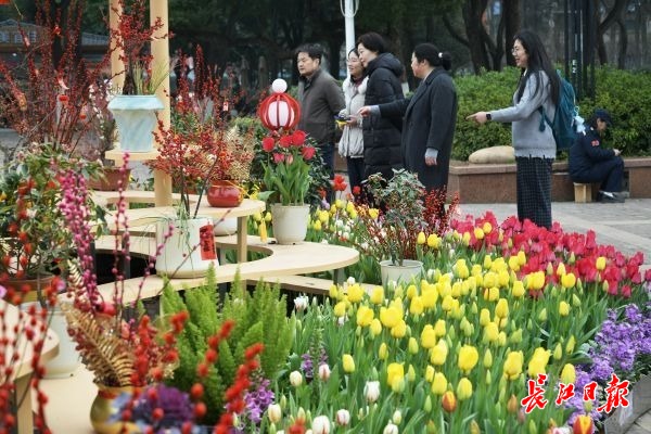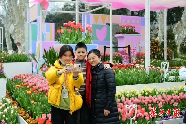 2月15日,中山公园新春郁金香花展上,众多市民来到这里游玩,本次郁金香花展共展出两万余株不同品种的郁金香,市民在郁金香花海中流连忘返。园区蜡梅和各色梅花也绚丽绽放,让人们感受到浓浓春意。