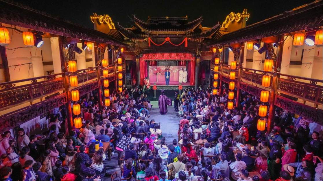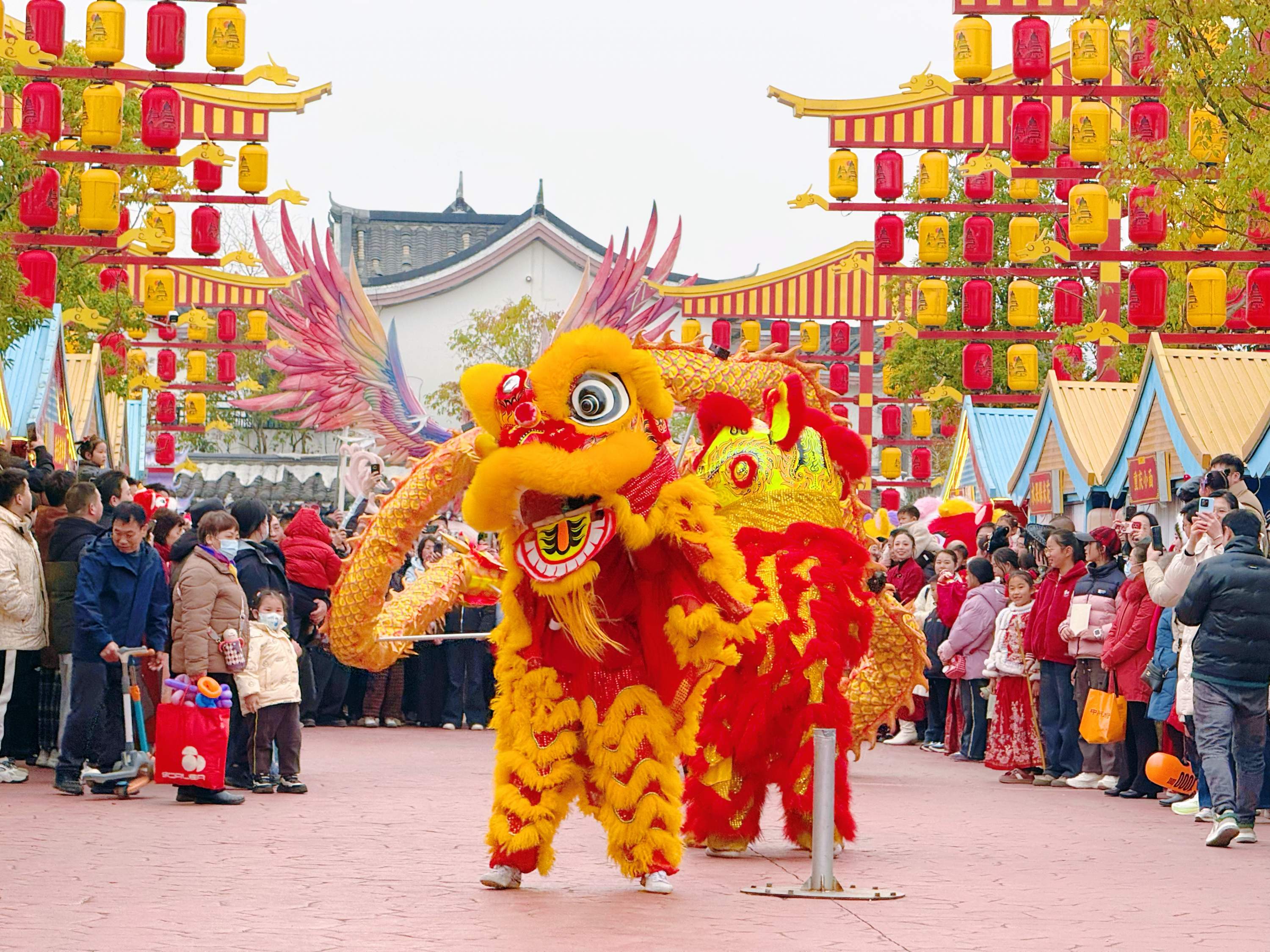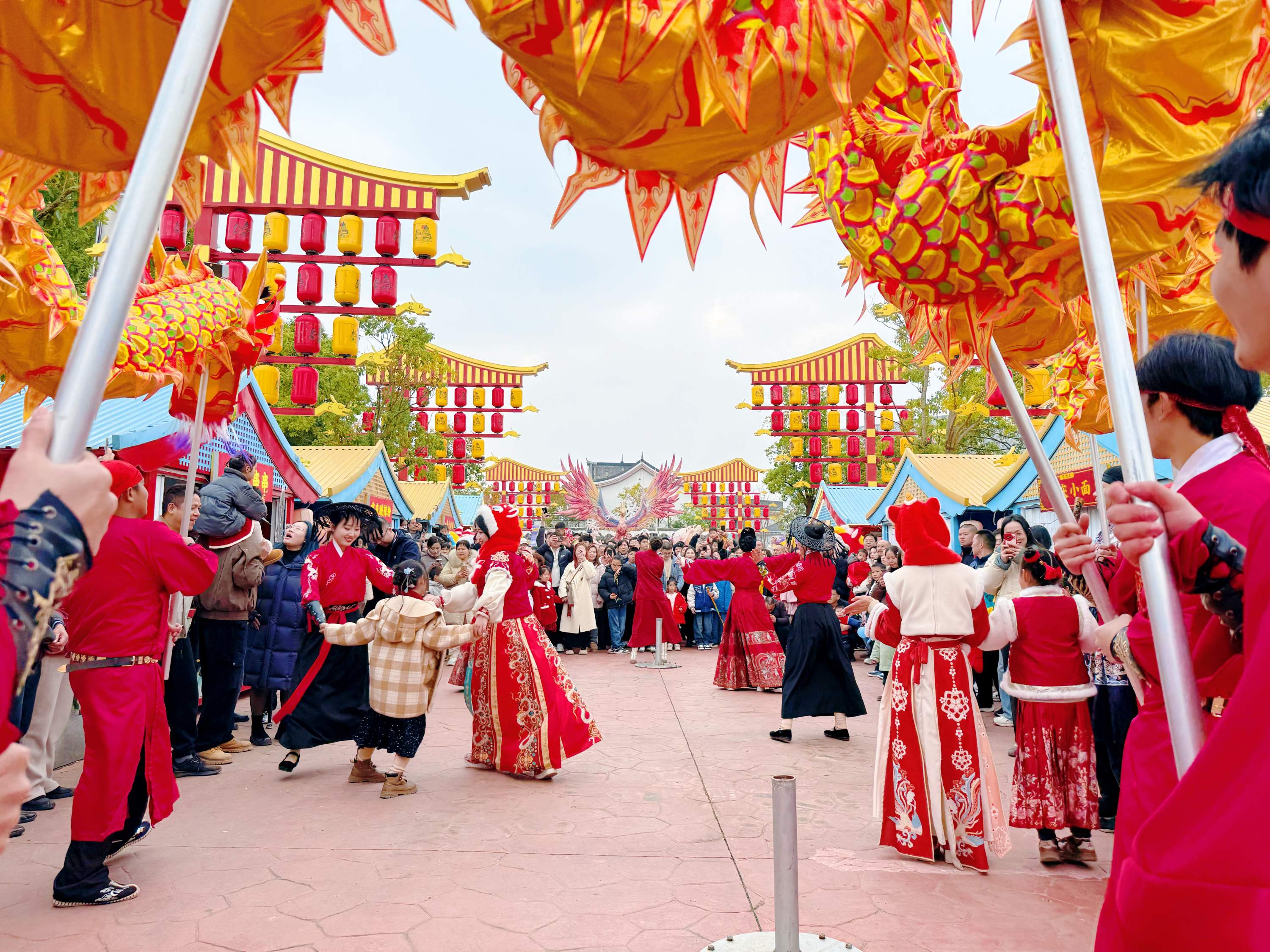 景区全天候演艺轮番上演,欢乐氛围贯穿全天。新春主题巡游队伍盛装出行,与游客亲密互动,南狮拜岁、喜气临门,讨得新年好彩头;百年古戏台之上,经典民俗剧目《古楼招亲》爆笑开演,邀请游客登台互动参与,全程笑点不断、热闹非凡;怀旧演艺《回到童年》带领游客穿越回80年代校园时光,重拾纯真美好;专为亲子家庭打造的《蒸汽实验室》《欢乐魔法秀》趣味十足,新奇实验与奇幻魔术互动不断,让小朋友们沉浸其中、乐不思蜀。多元化的视听盛宴,跨越古今时空,让阖家团圆更添欢乐。