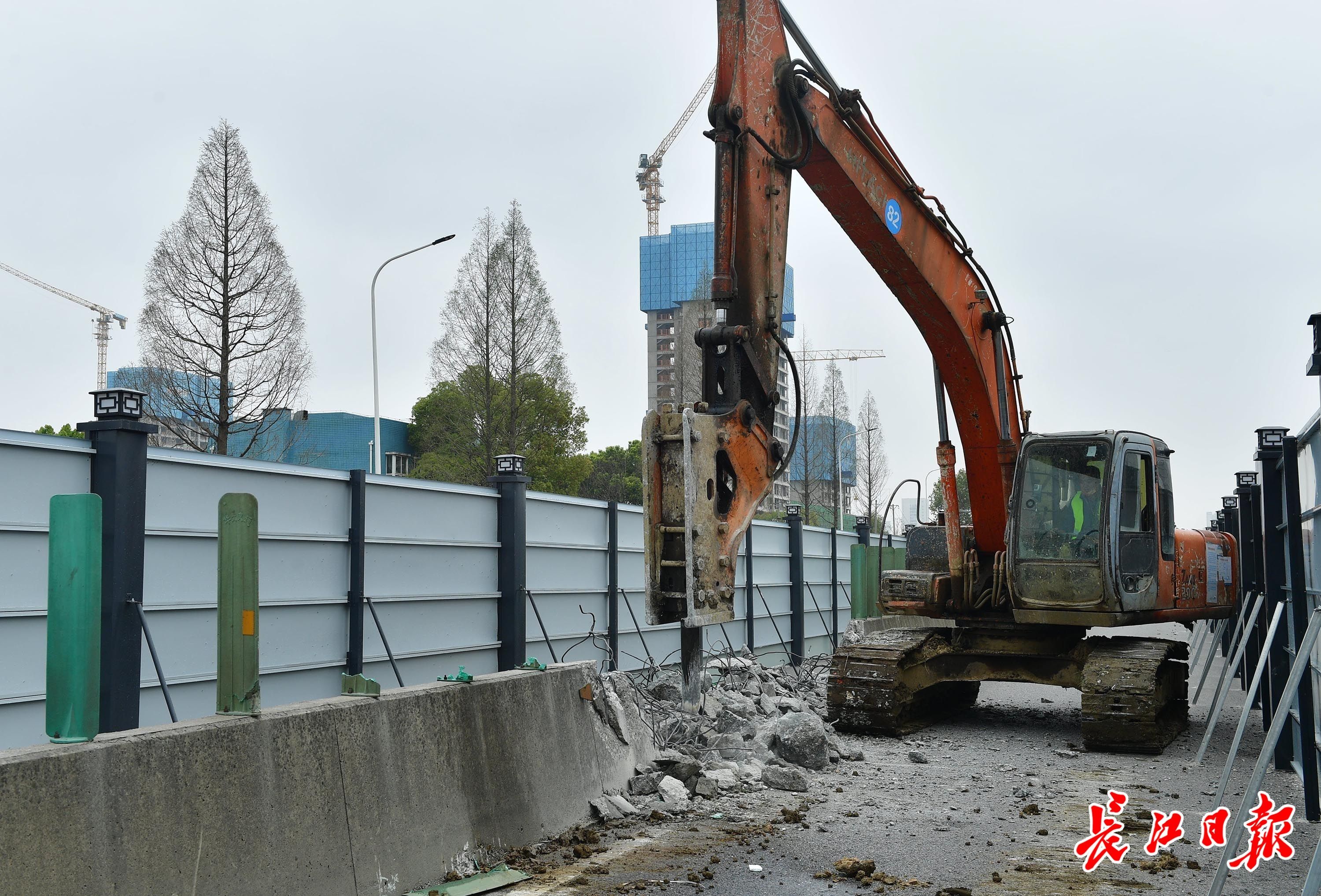 当天,长江日报记者来到位于新城十二路的四环线互通立交段,5台挖掘机正同时推进平整土地,一旁,三台“啄木鸟”破碎机在工人的操作下,将原有道路旁的护栏进行拆除。国道上,不少路段已立起挡板,进行打围作业。