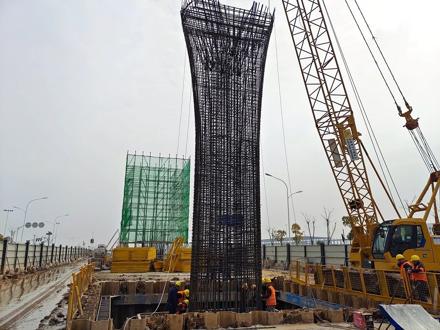武汉地铁建设事业总部一级项目经理周歌军介绍,为了确保简支梁下部结构施工安全和稳固,武汉地铁首次采用钢筋骨架整体预制及安装技术。“通过工厂化生产,在场内进行墩柱钢筋骨架整体预制绑扎,将钢筋绑扎的高空作业转化为地面作业。”他说,墩身、简支梁端横梁、车站盖梁等部位钢筋复杂,均采取分段或整体预制工艺,钢筋骨架连接质量有保证,有效提高了施工质量。现场采用吊装设备整体吊装入位,方便快捷,施工效率高,并减少高空作业,降低安全风险。