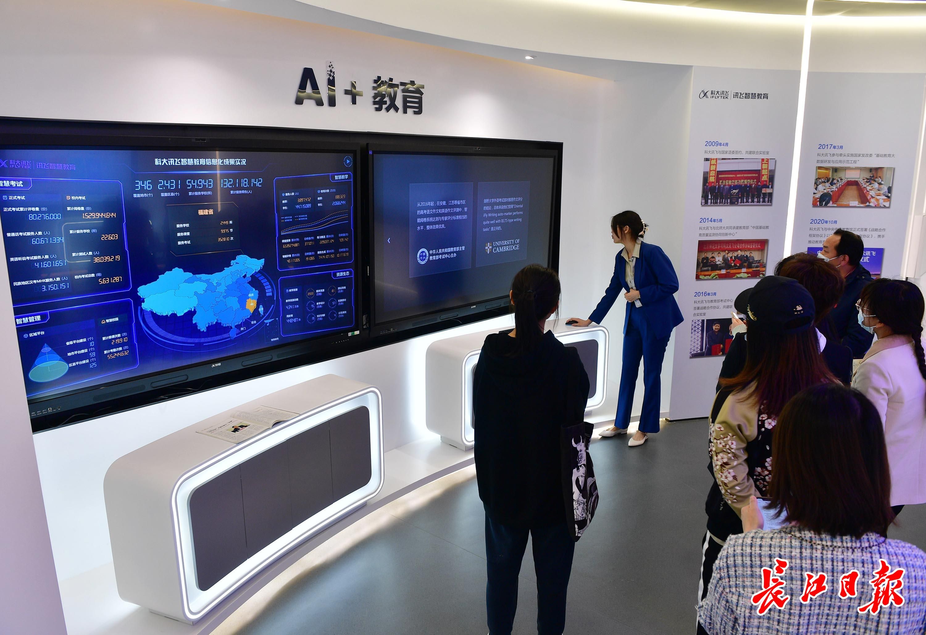 4月1日,科大讯飞展示厅,讲解员在介绍智慧教育相关内容。记者李永刚 摄