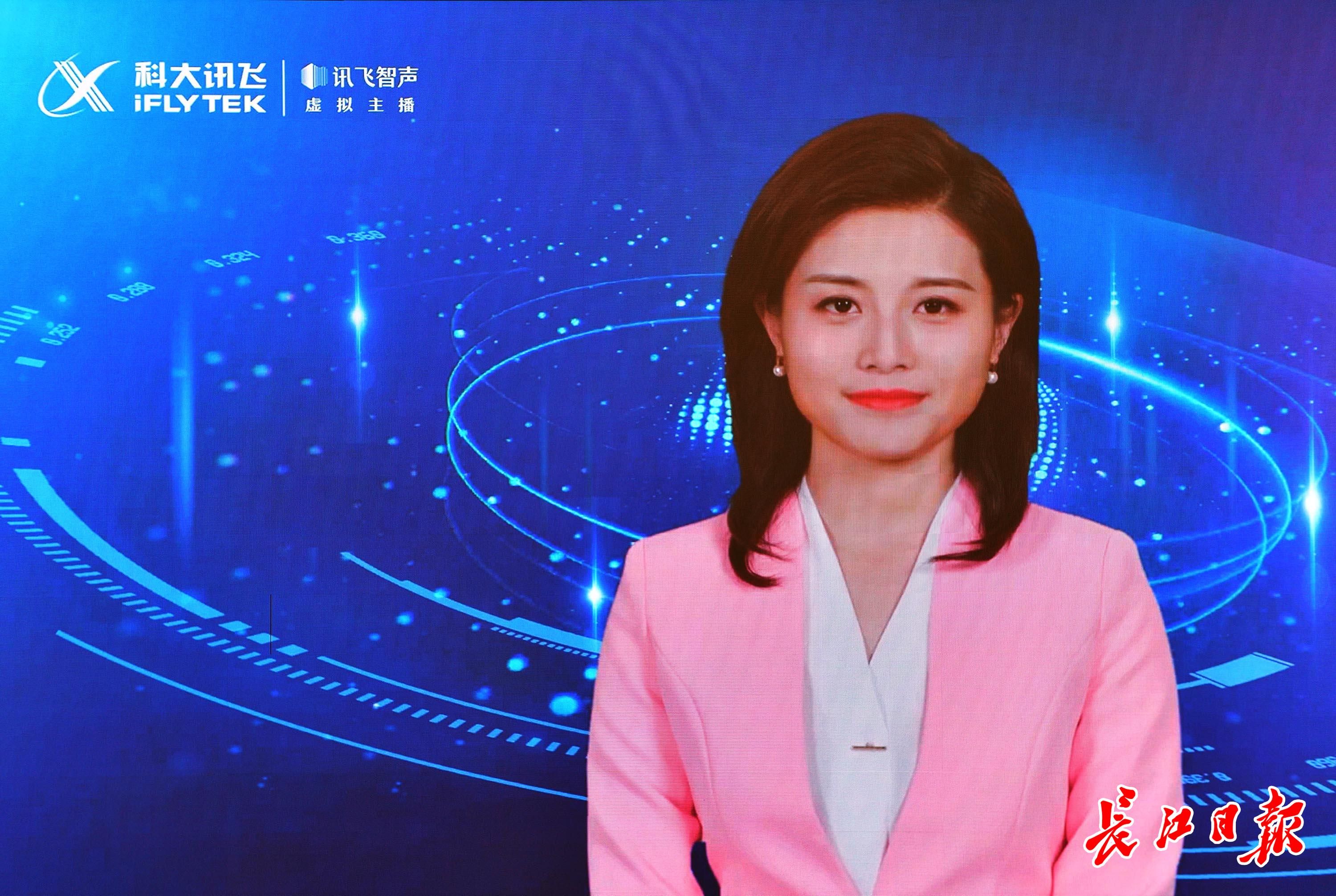 4月1日,科大讯飞展示厅,基于真人建模生成的虚拟主播在播报新闻。记者李永刚 摄